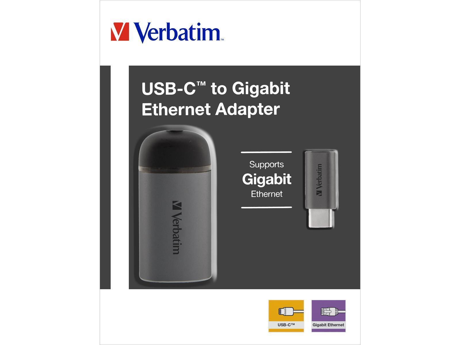 Produktinformationen "Adapter USB-C auf RJ45 Gigabit von Verbatim, 10cm Kabel, Aluminiumgehäuse"