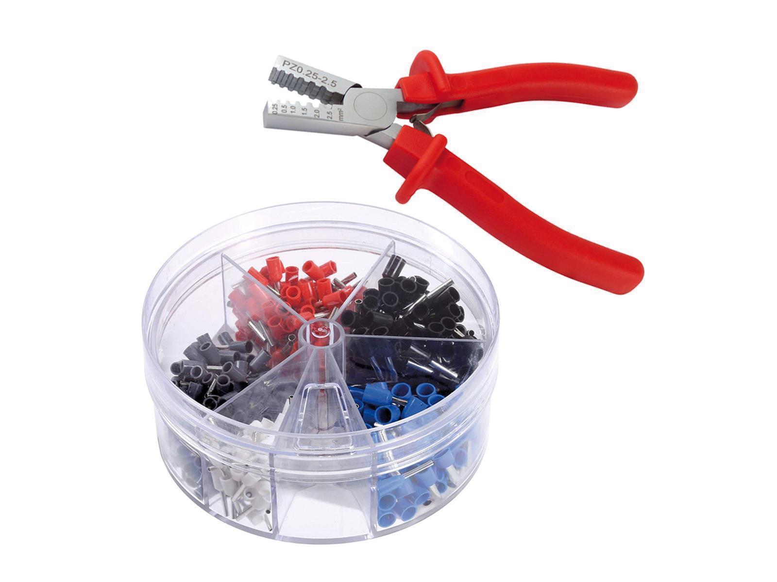 Produktinformationen "Aderendhülsen-Set Aderendhülsenzange mit 400 Aderendhülsen 0,5-2,5mm² isoliert, in Streudose"