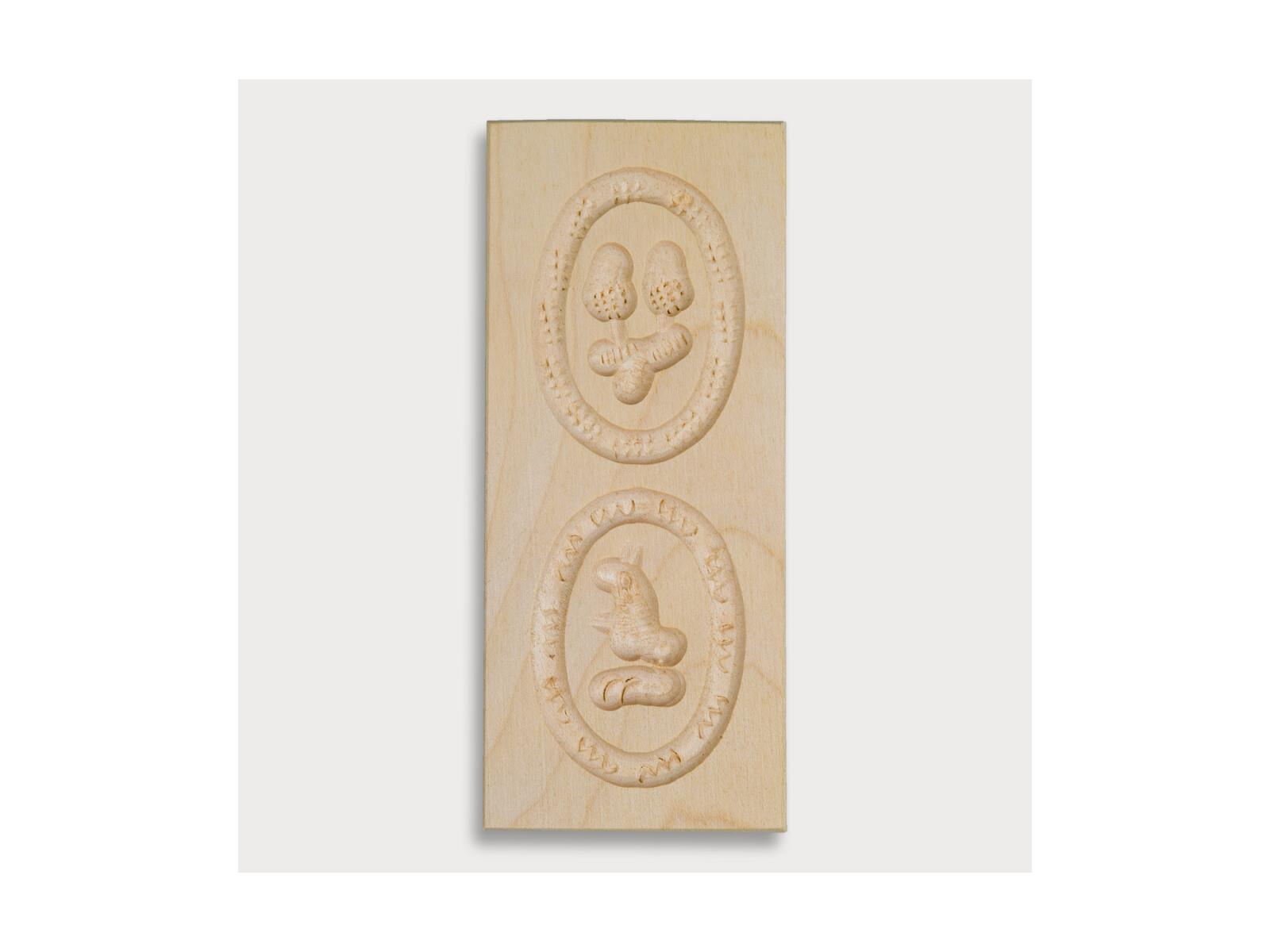 Produktinformationen "Anisgebäckform, gehämmert, oval, 2 Bilder aus Holz 14 cm"