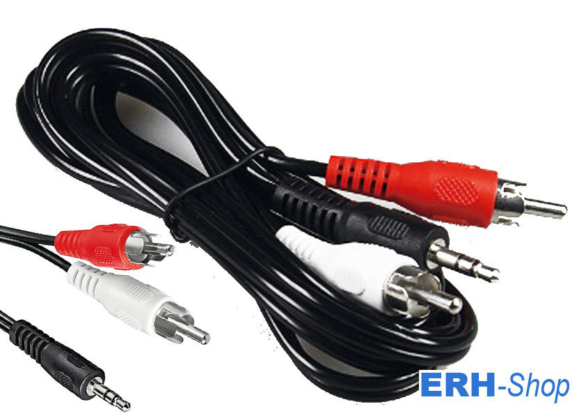 Hochflexible Audioverbindung vom Computer zur Hifi-Anlage, Mischpult oder Fernseher, 2x Cinchstecker auf 1x Klinkenstecker 3,5mm mono,
