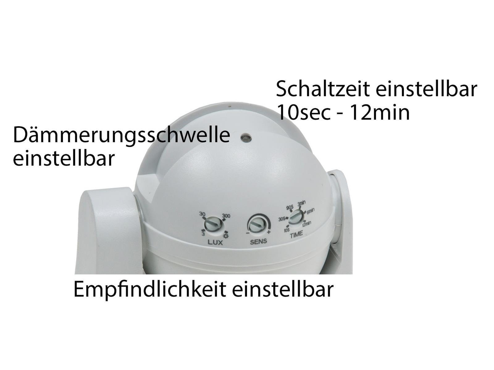 Praktischer Aufbaumelder mit HF-Technologie! Ideal z.B. den Garten oder die Garage.. Ab 1 Watt schaltet der Melder Ihre modernen LED-Leuchten, LED-Lampen und LED-Röhren sowie herkömmliche Glühlampen und Leuchtstoffröhren. Sie können per einfachen Drehknopf die Zeit und die Lichtempfindlichkeit einstellen. Lieferung erfolgt inkl. Montagematerial und Anleitung.
