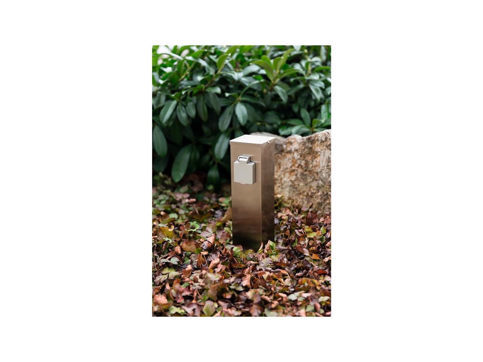 Produktinformationen "Außensteckdose 2-Fach, IP44, Edelstahl V2A, 127x127x300mm, 3680W/ 16A"