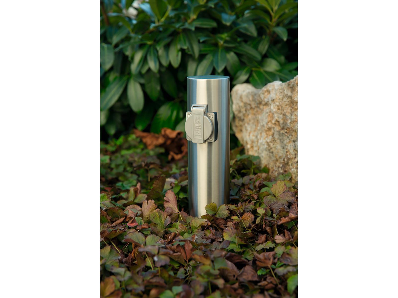 Produktinformationen "Außensteckdose 2-Fach, IP44, Edelstahl V2A, Ø118x300mm, 3680W/ 16A"