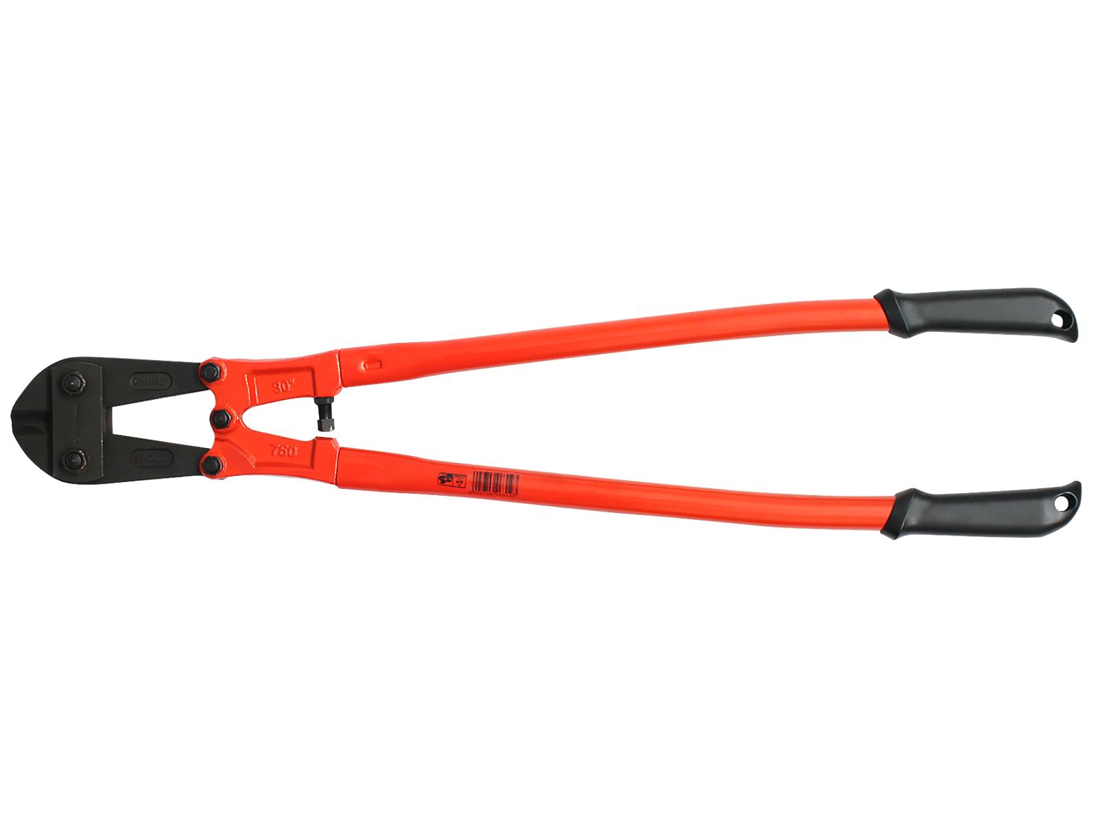 Bolzenschneider 450mm • Schneidbacken aus Chrom-Molybdän-Stahl • Messerkopf mit Übersetzung und Nachstellschraube • Stabile, lackierte Rohrschenkel mit Gummi-Handgriffen. • Schneiddurchmesser bis 6mm