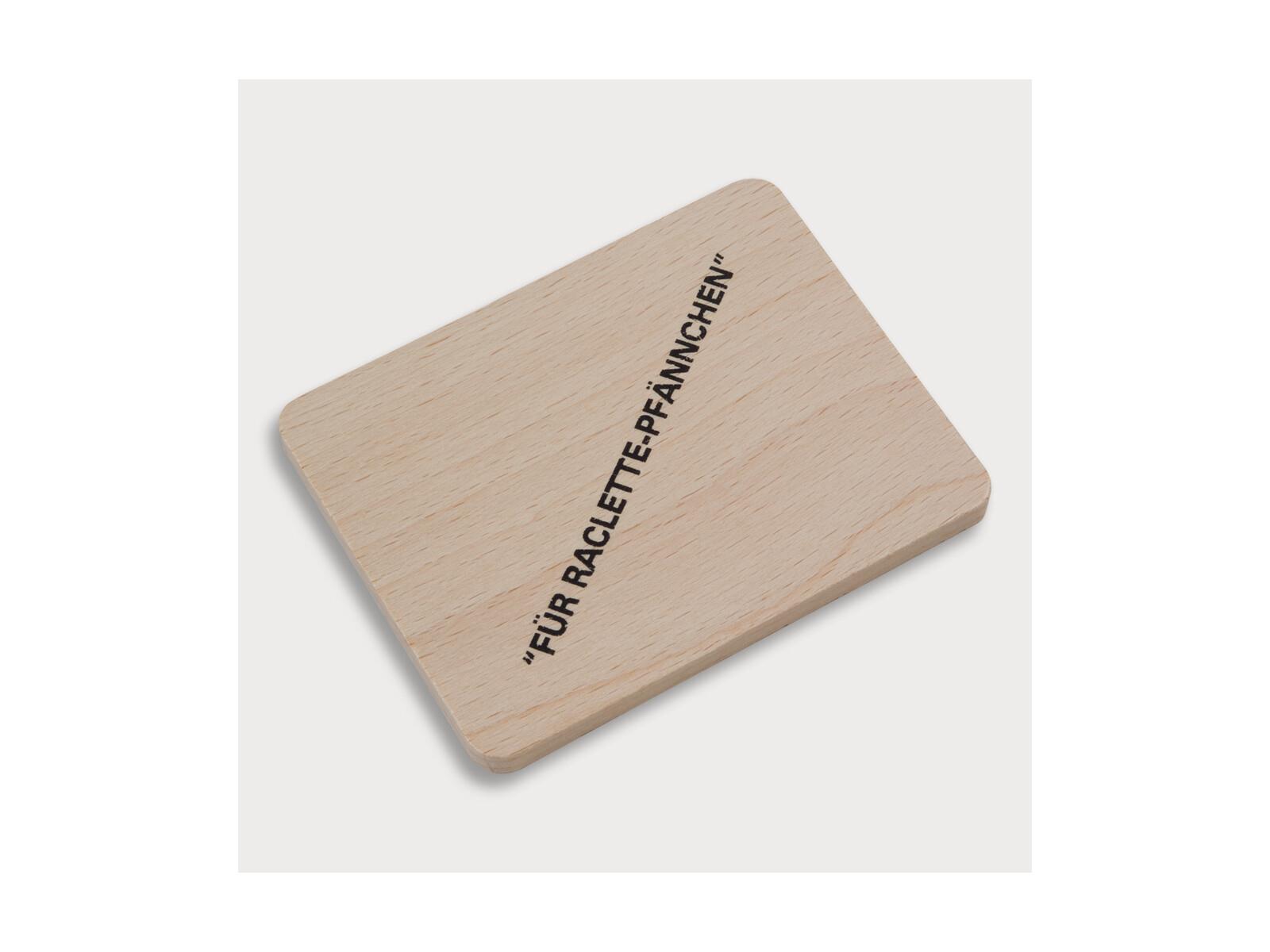 Produktinformationen "Brettchen für Raclettepfännchen, mit Aufdruck aus Holz 10 cm"