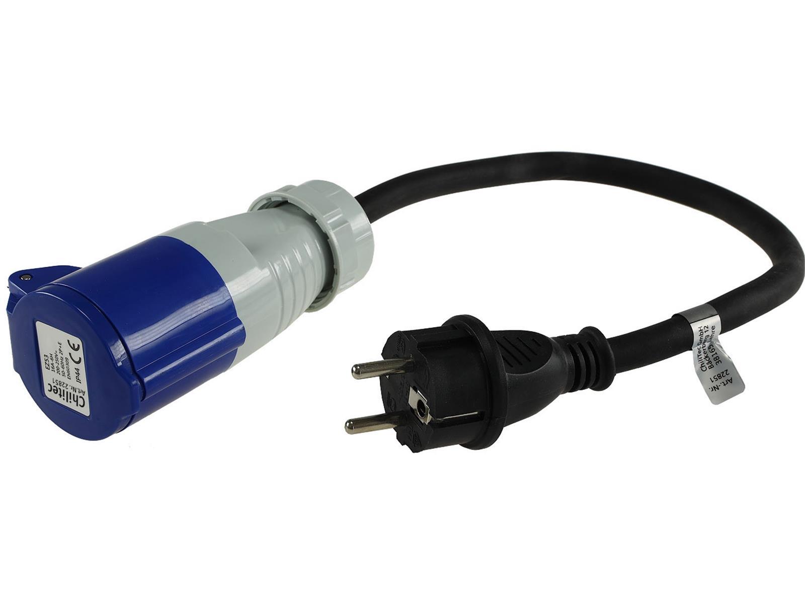 Ideal für Camping, Caravaning und Wohnwagen: Adapterleitung von Schutzkontakt-Stecker auf CEE-Kupplung