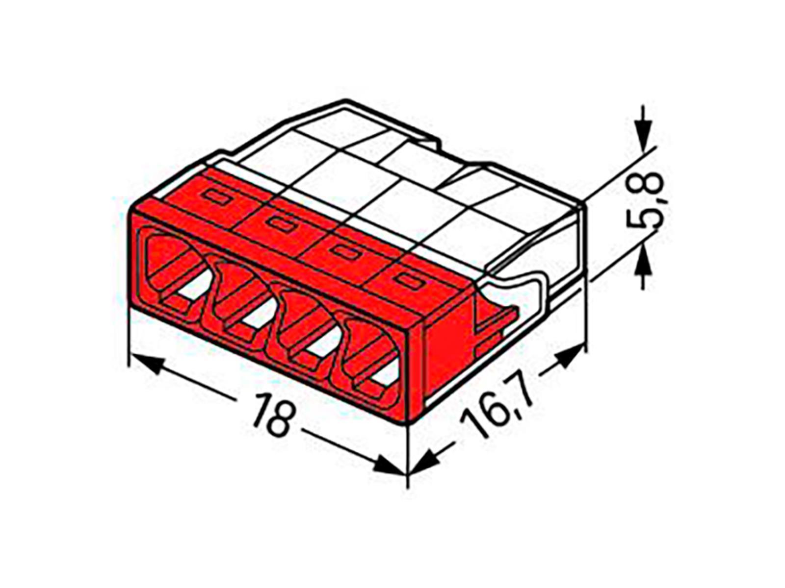 Produktinformationen "COMPACT-Verbindungsdosenklemme WAGO, eindrähtige Leiter, 4 Klemmstellen, rot"