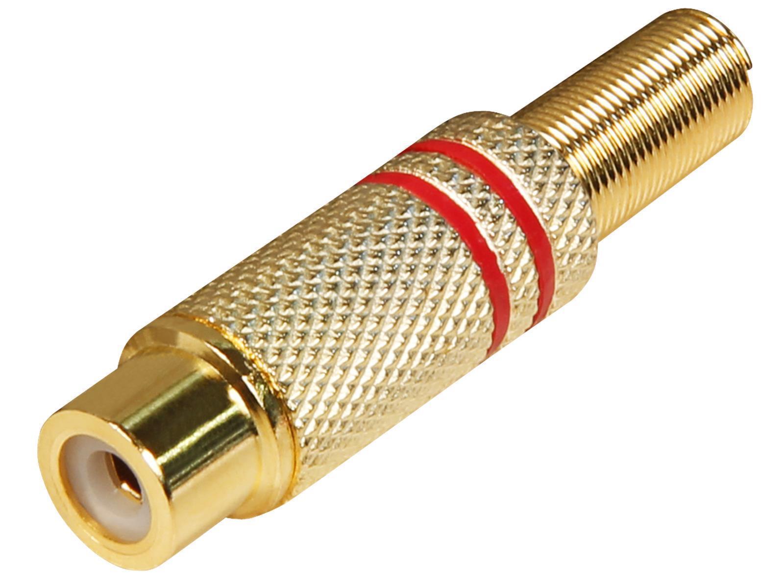Produktinformationen "Cinchkupplung, vergoldet mit Knickschutz-Feder, rot"
