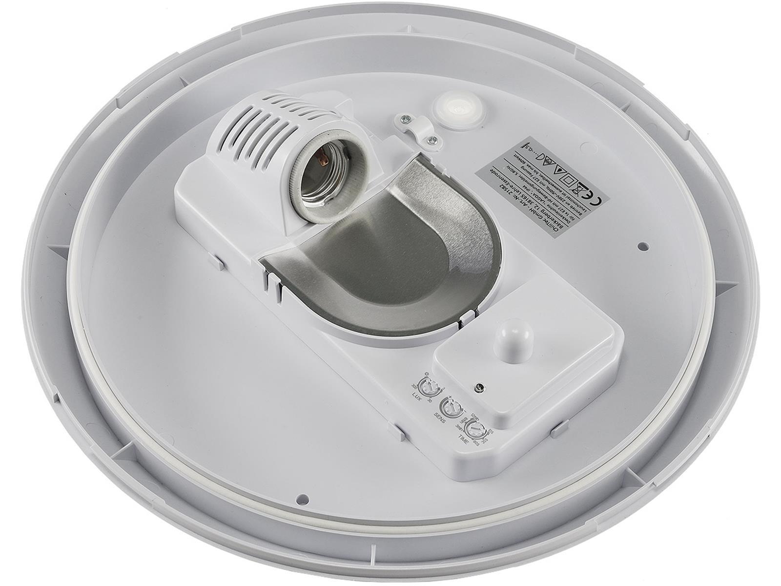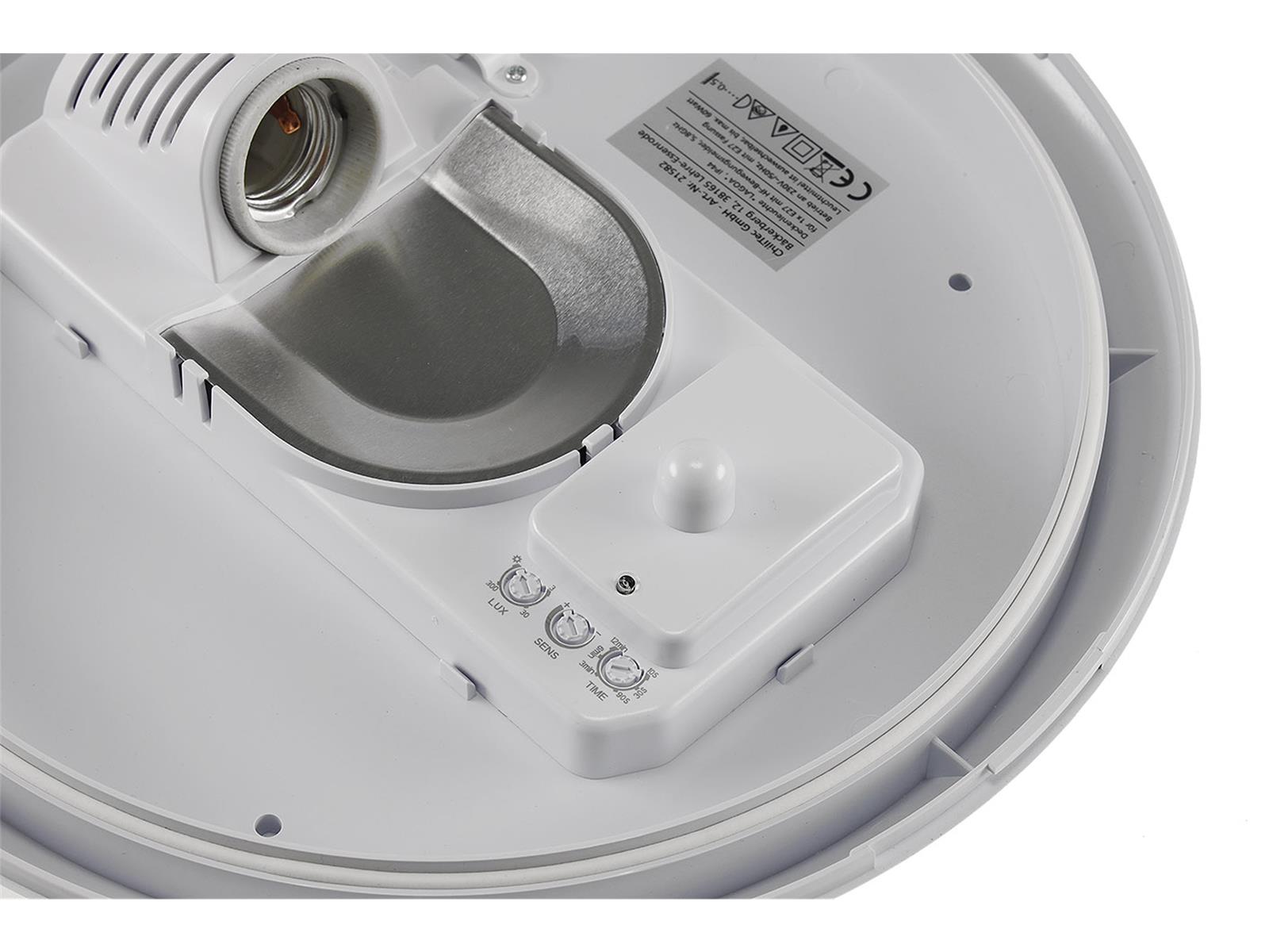 Elegante Deckenleuchte mit hochwertigem Microwellen-Bewegungsmelder und formschönem UV-beständigem Gehäuse mit eleganter matter Abdeckung und weißem Außenring, Technische Details: