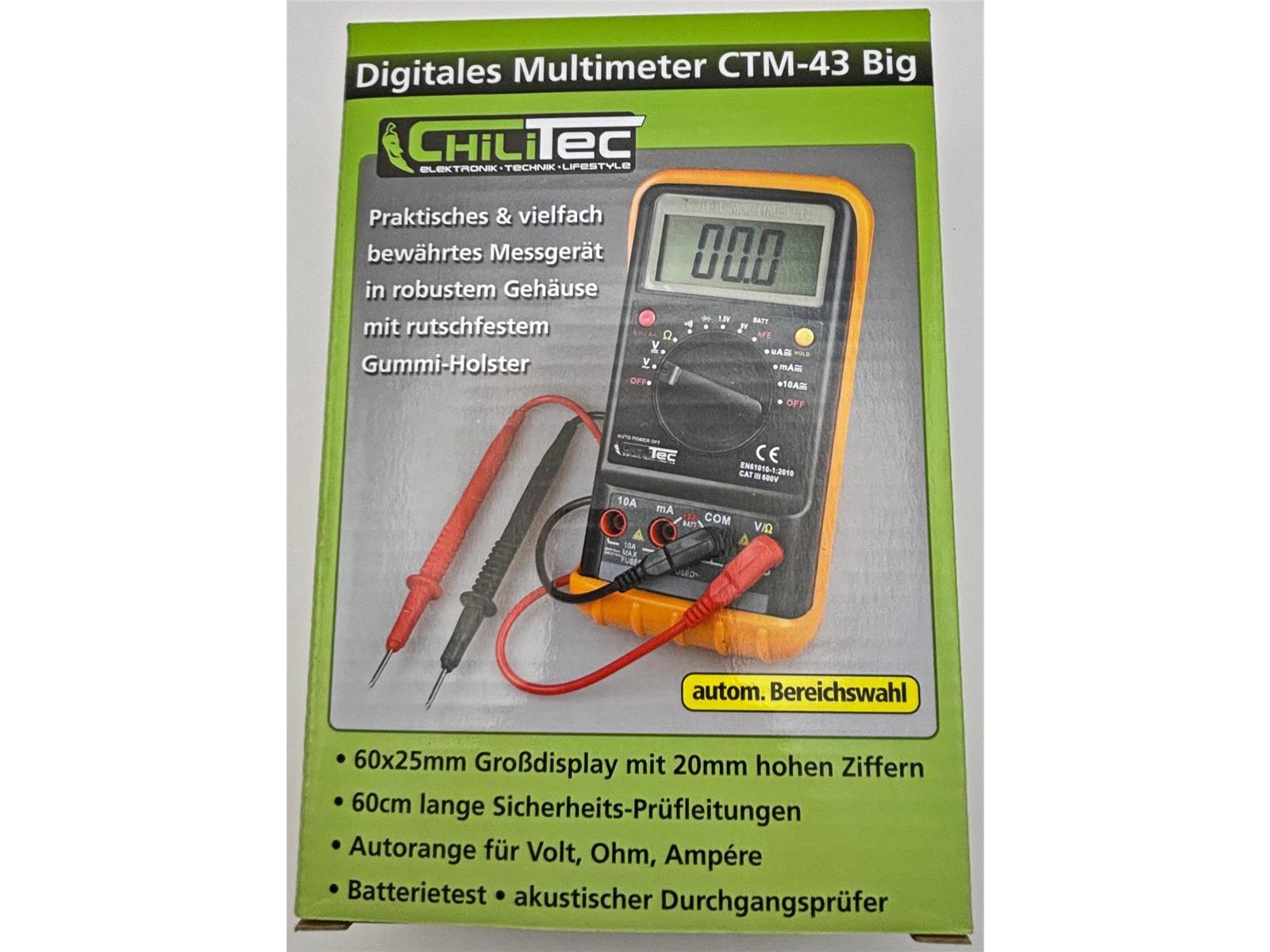 Produktinformationen "Digital-Multimeter "CTM-43 big" Volt, Amp., Ohm, autom. Messbereichswahl"