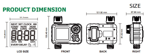 Produktinformationen "Digitaler Bewässerungscomputer "CT-WB7" mit Adapter 1" & 3/4", IP54"