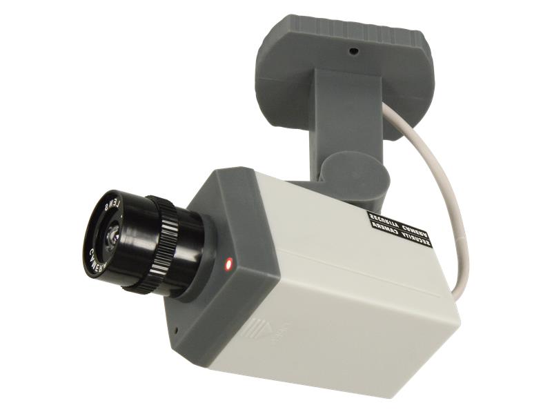 • vom Original nicht zu unterscheiden • Bewegungsmelder • automatisches Schwenken (15 Sek. lang) im 45°-Winkel Kamerakopf neigbar in 12 Schritten) • blinkende LED und Kabel • leichte Montage an jedem Ort (inkl. Schrauben & Dübel) • LxBxH (Kamera) 130x52x55 mm, (Fuß) 55x78x100 mm • Gewicht 220 g • Betrieb mit 3x Mignon (nicht dabei)