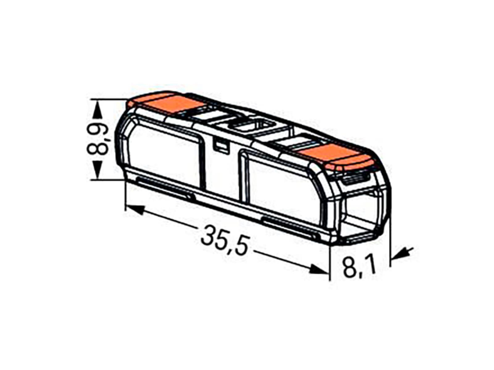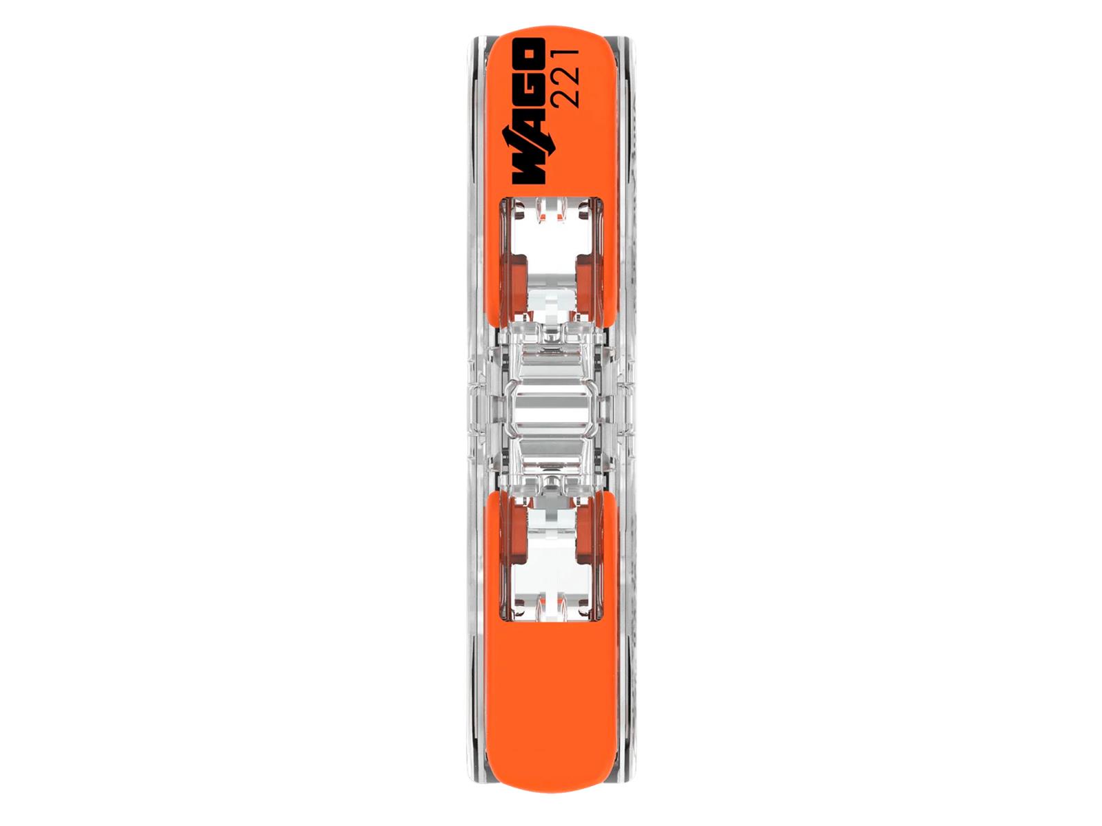 Produktinformationen "Durchgangsverbinder WAGO mit Hebel, alle Leiterarten, max. 4mm², max. 85°C"