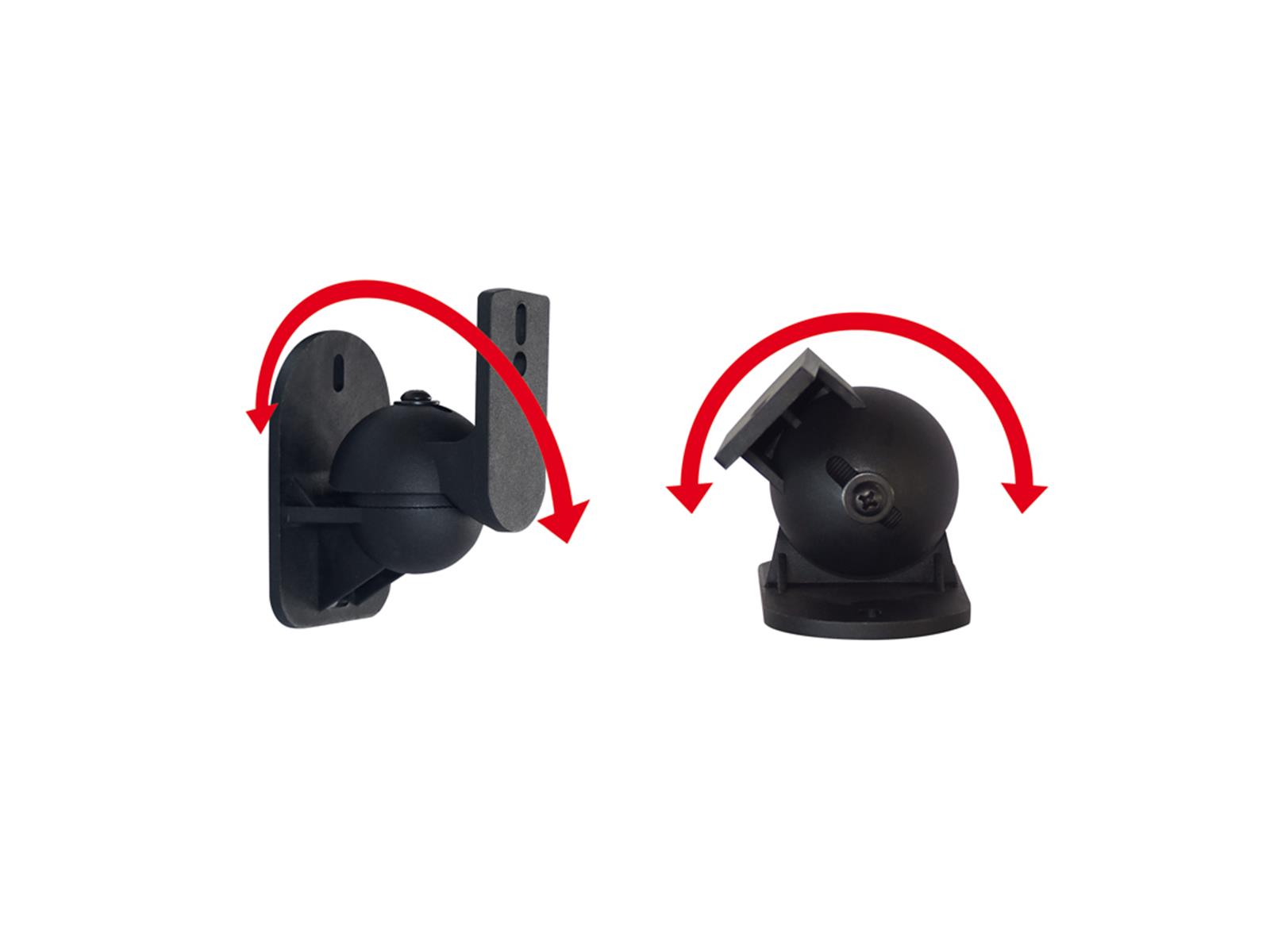 Universal Lautsprecher-Wandhalterung. Passend für viele Mini Boxen und andere Beschallungs-Systeme, Farbe: schwarz. Belastbar bis 5 kg. Lieferung inkl. Befestigungsmaterial, paarweise im Blister.