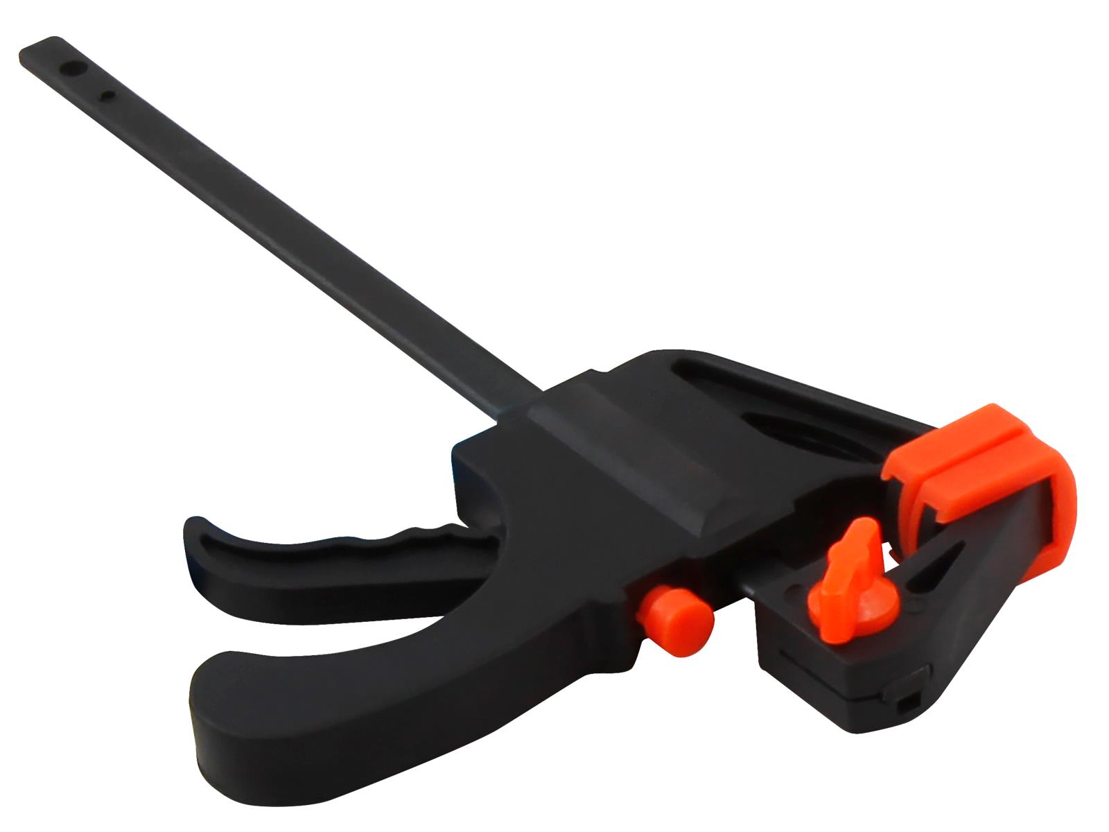 • Spanntiefe: 40 mm • Spannweite: 100 mm • Mit einer Hand zu bedienen • Schiene aus schwarz lackiertem Stahl
