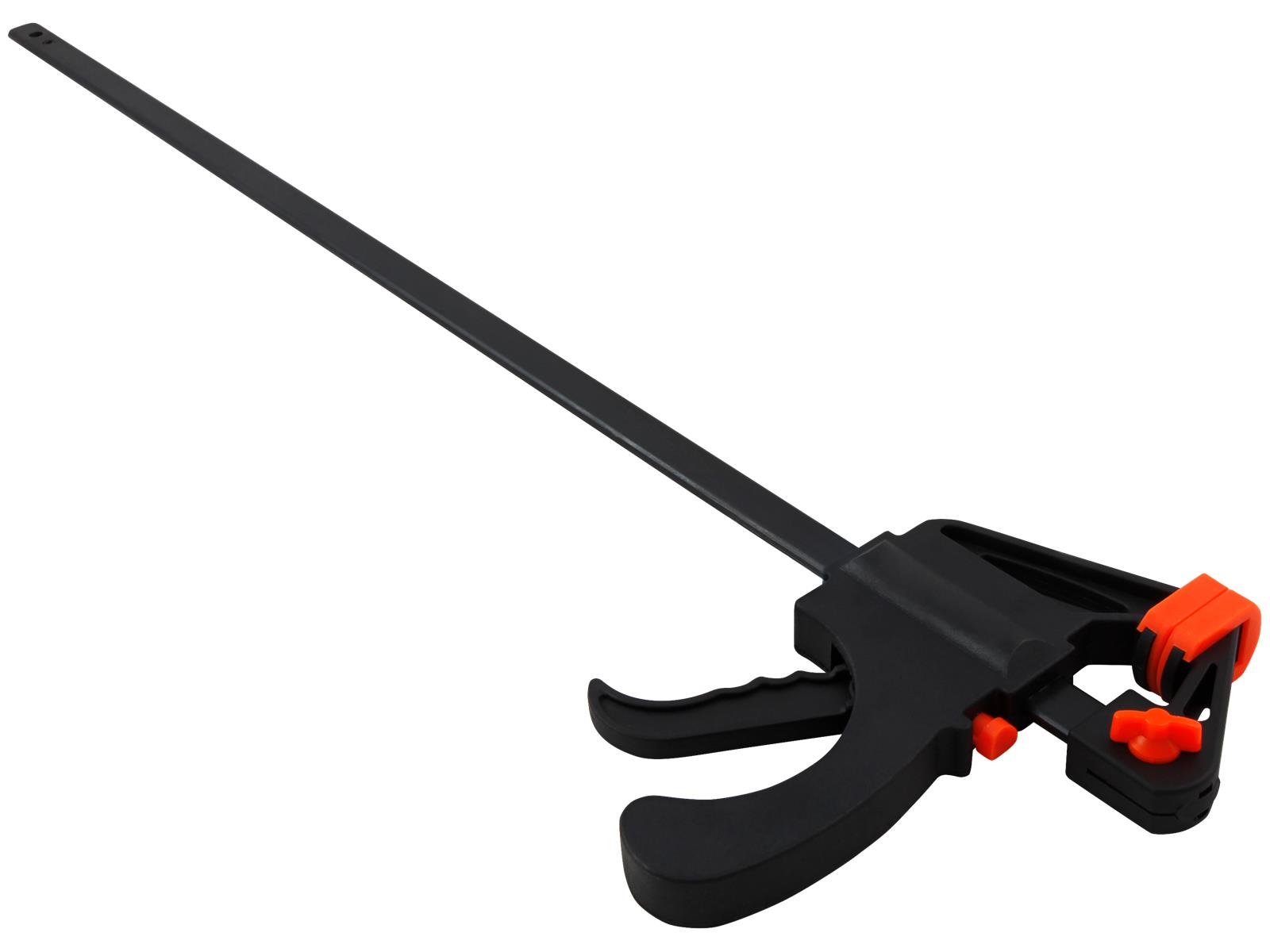 • Spanntiefe: 60 mm • Spannweite: 600 mm • Mit einer Hand zu bedienen • Schiene aus schwarz lackiertem Stahl