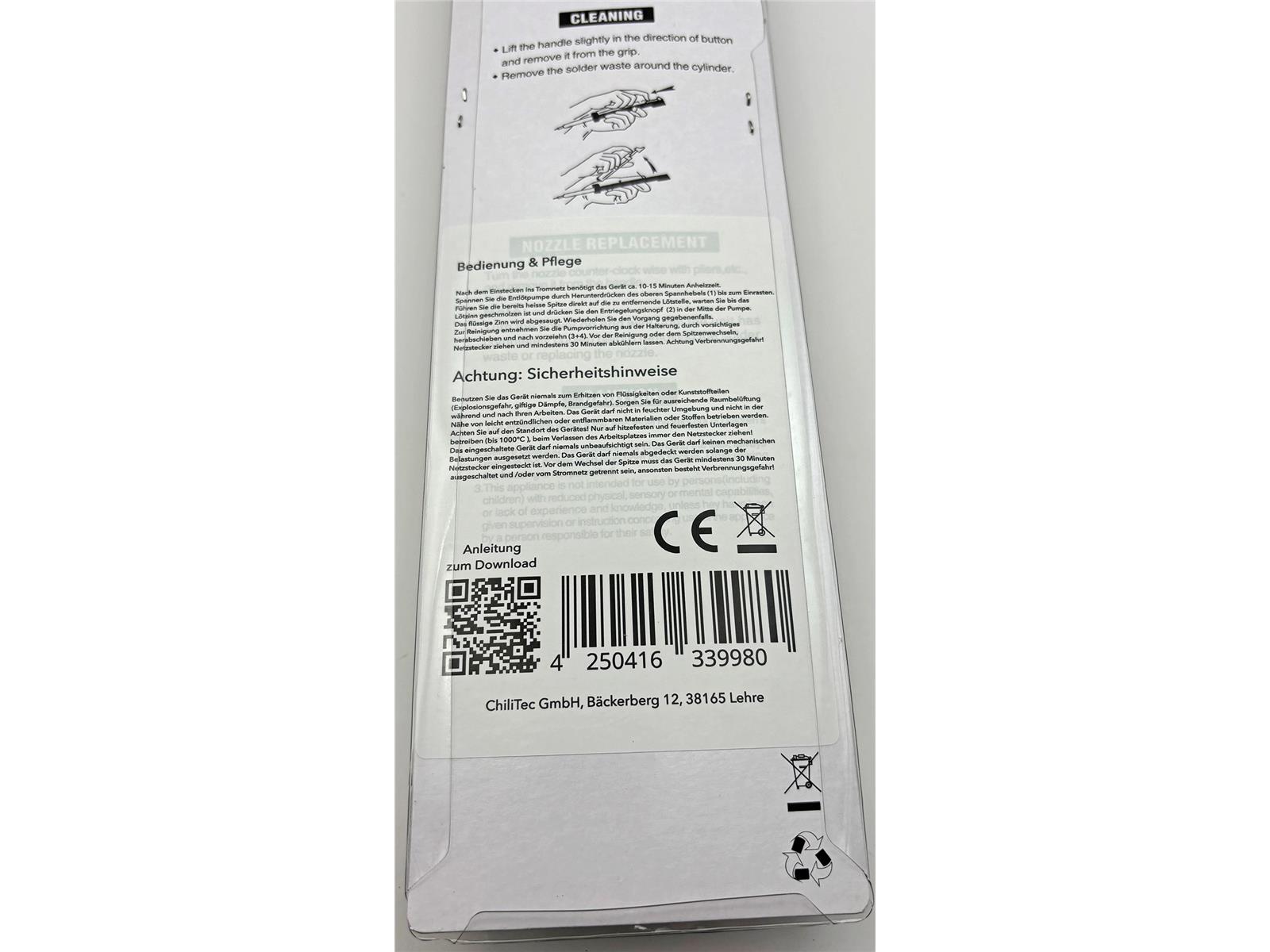 % 14,95 €* UVP (46.56% gespart)Praktische elektronische Entlötpumpe mit 40Watt Heizung für komfortables Arbeiten. Das zu entfernende Lötzinn wird von der Heizung verflüssig und lässt sich mittels Entlötpumpe direkt entfernen. Ideal für Hobbybastler, Handwerker, Elektrotechniker. Einfaches und unkompliziertes Entlöten von Lötstellen.
