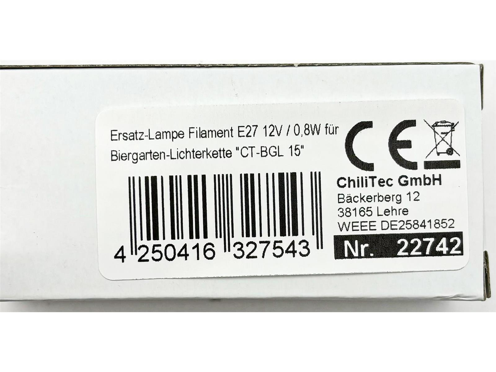 Passendes 12V Ersatz LED Leuchtmittel für ChiliTec Aussen Lichterkette. Achtung: Dieses Leuchtmittel ist nur für diese Lichterkette zu verwenden.