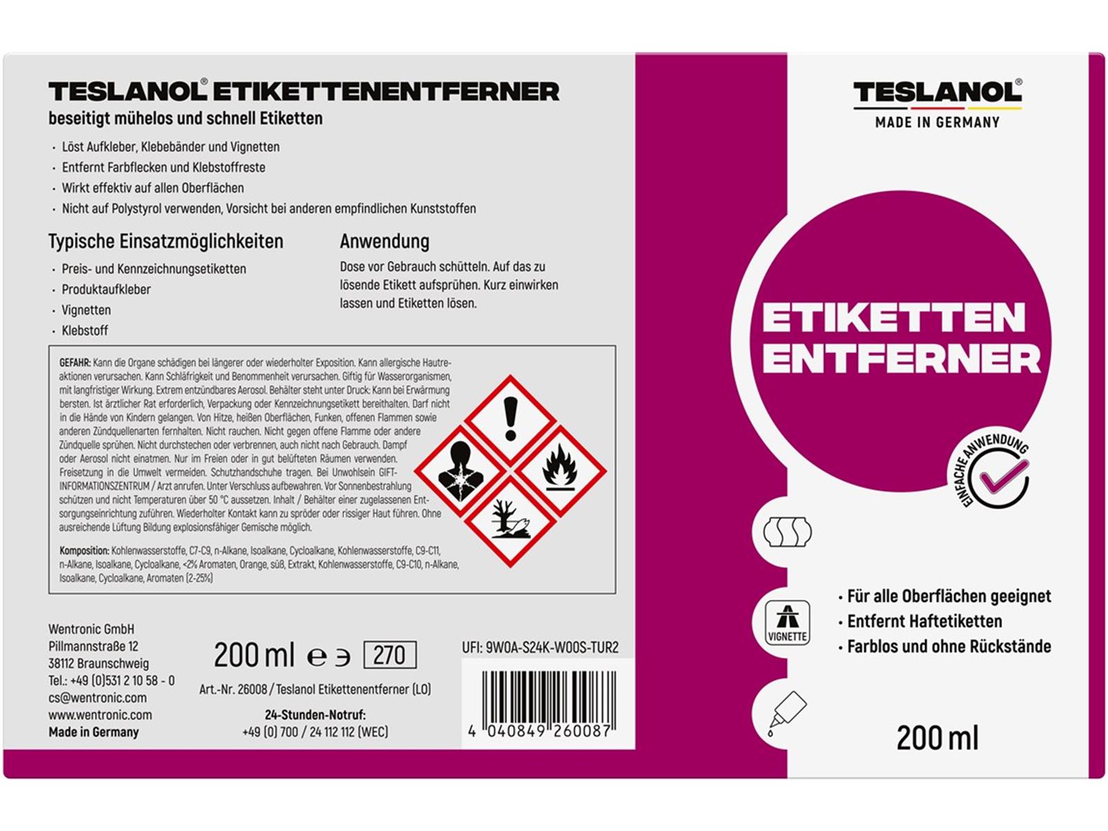 - Etikettenentferner in praktischer Spraydose, um Aufkleber, Klebebänder, Etiketten und Vignetten zu lösen