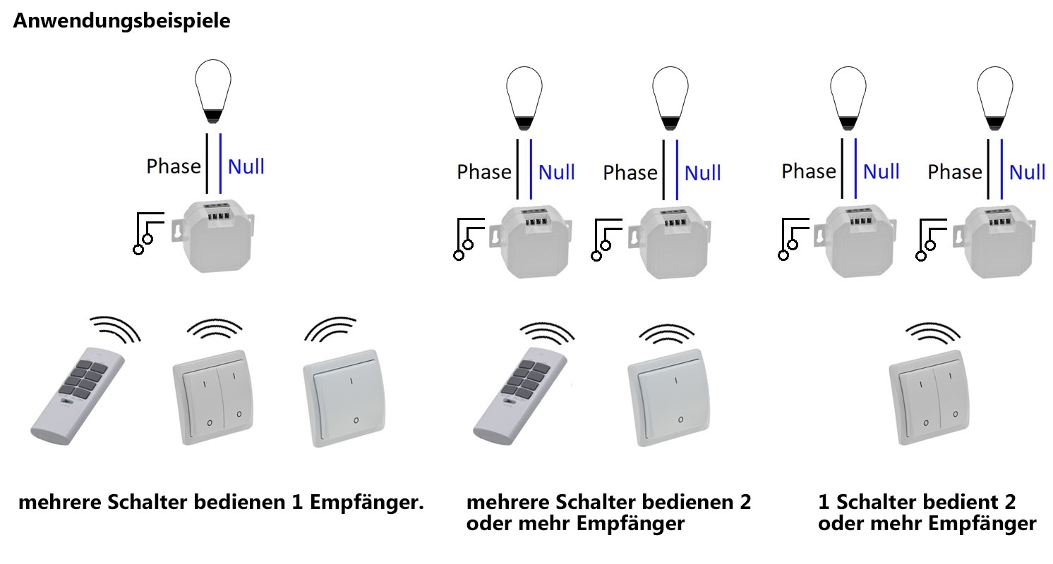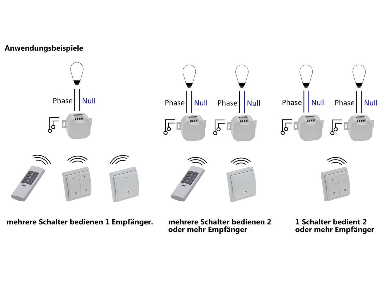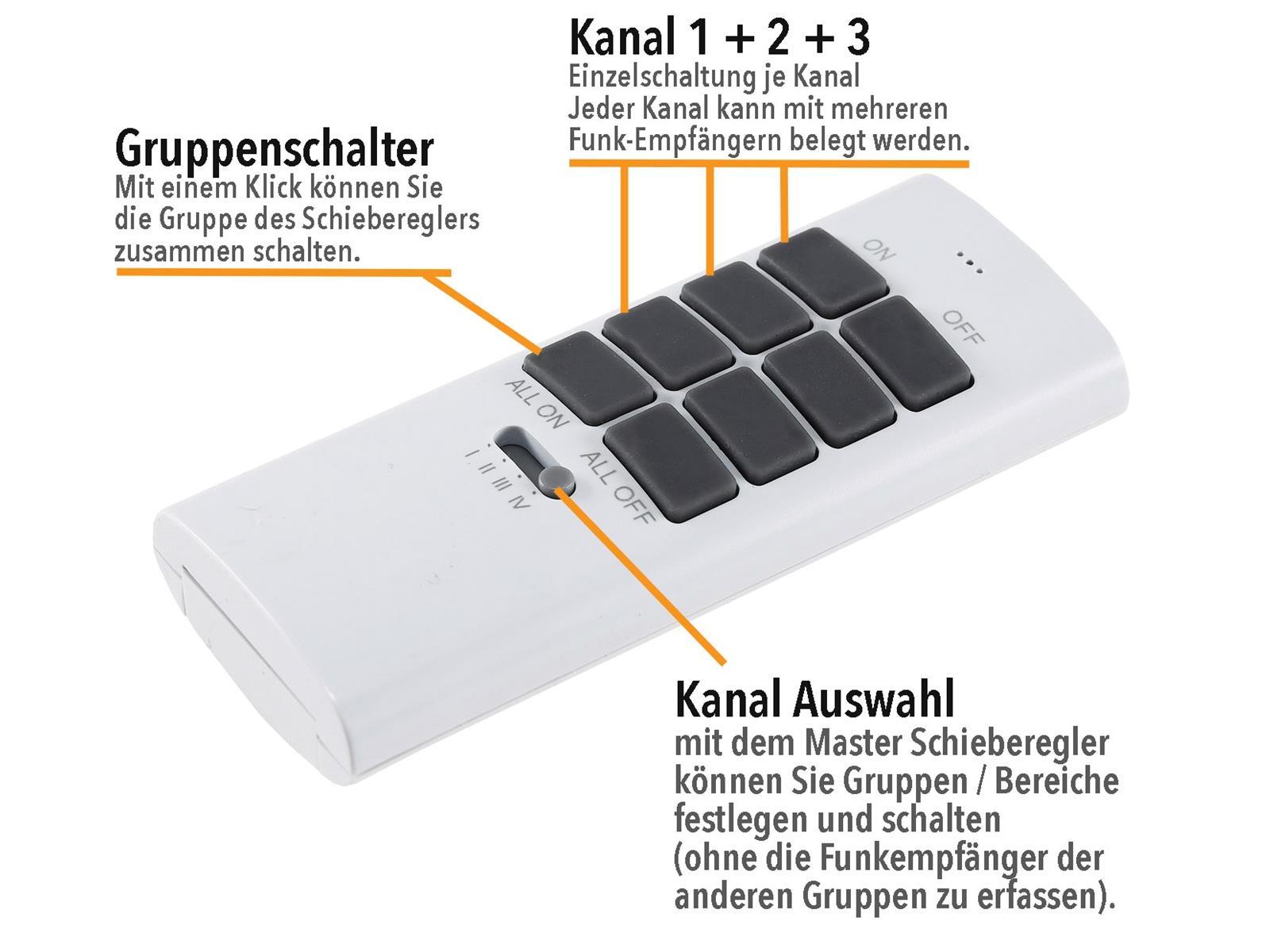 • bis zu 3 Kanäle mit je max. 4 Funk-Empfängern schaltbar