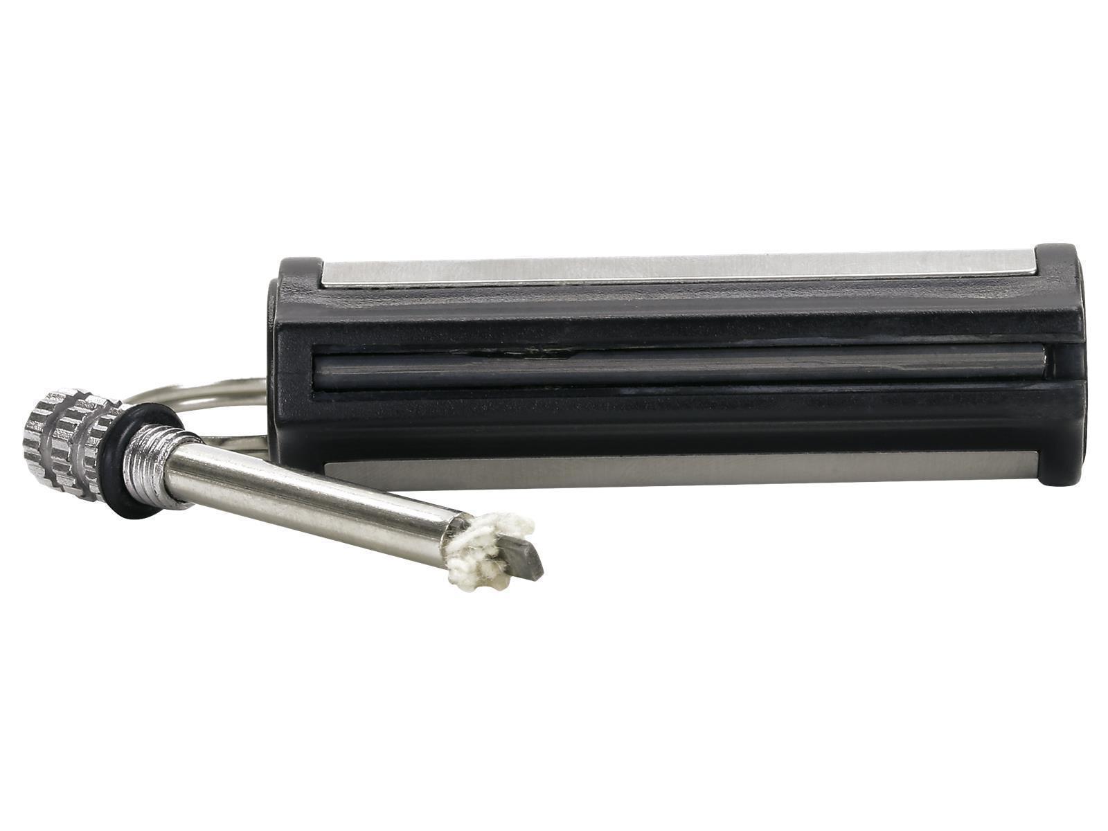 • Feuerstein • Edelstahl • mit Schlüsselanhänger • Ideal für Camping, Wandern und Grillen • Maße 65 x 20 x 20 mm