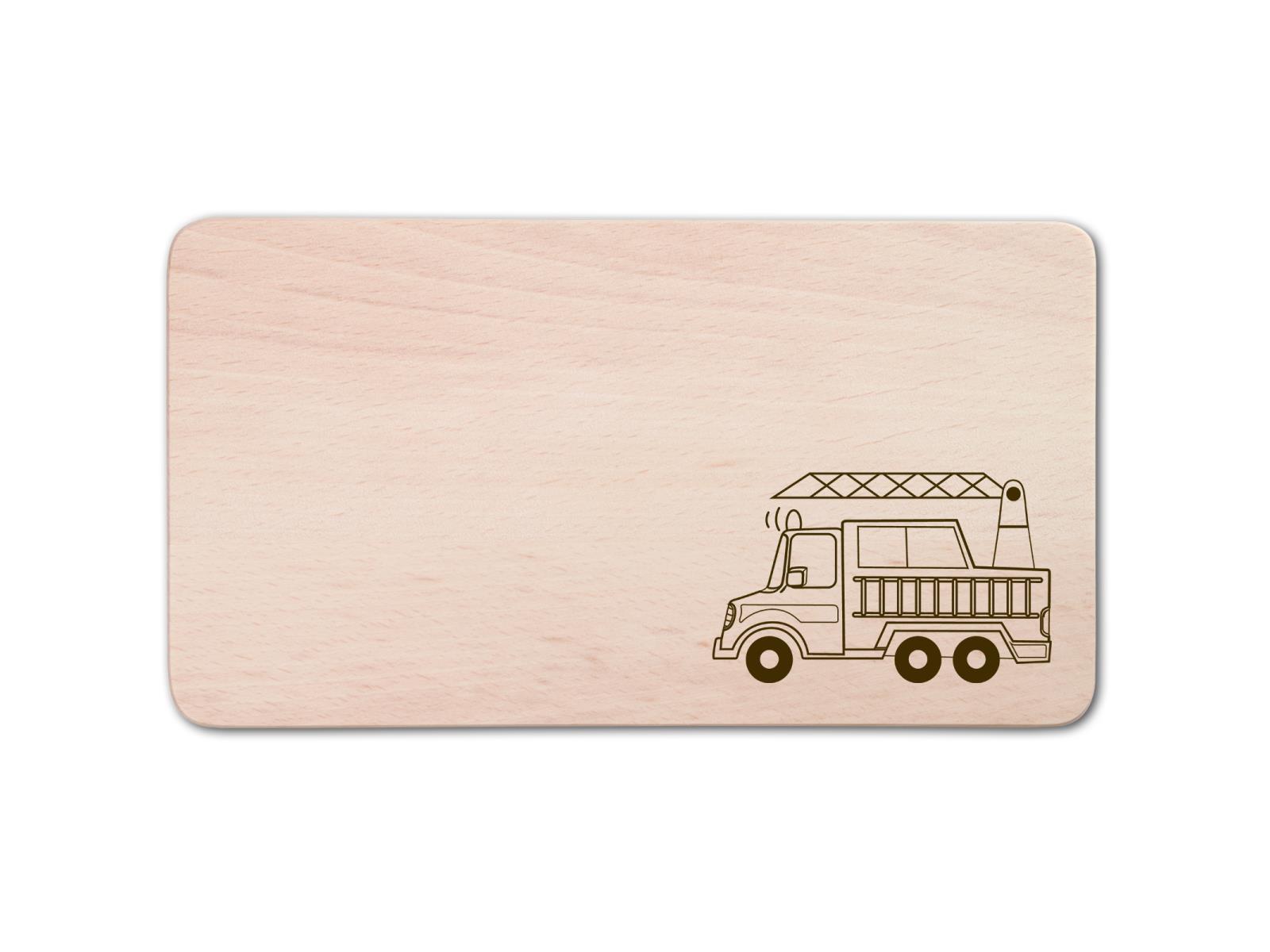 Produktinformationen "Frühstücksbrett, rechteckig, mit Motiv Feuerwehrfahrzeug aus Holz 22 cm"