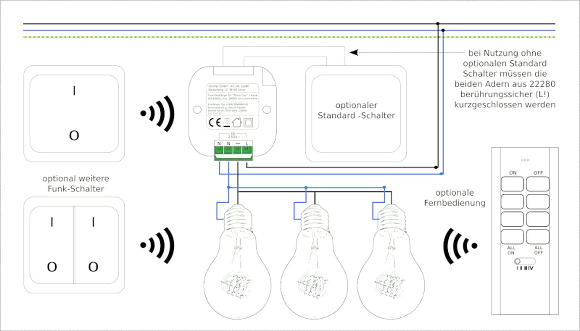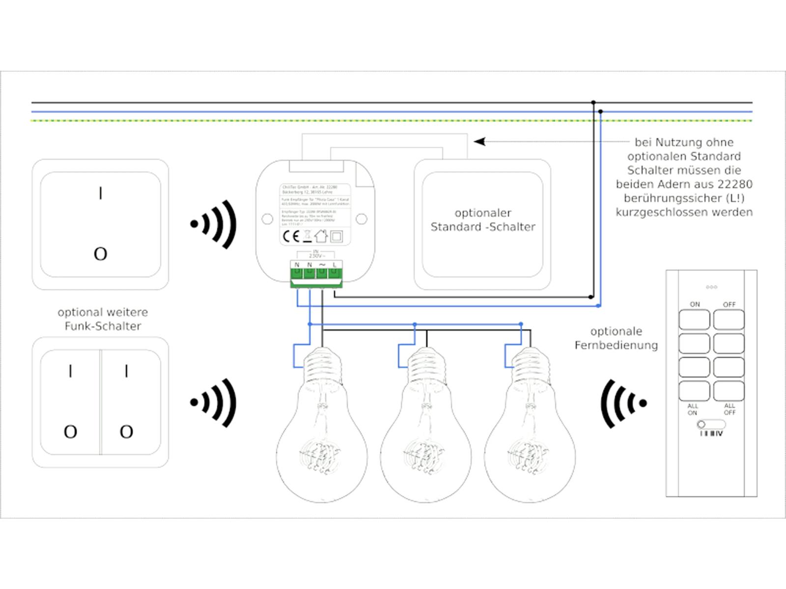 • Schaltempfänger benötigt zum Anschluss Phase & Nullleiter