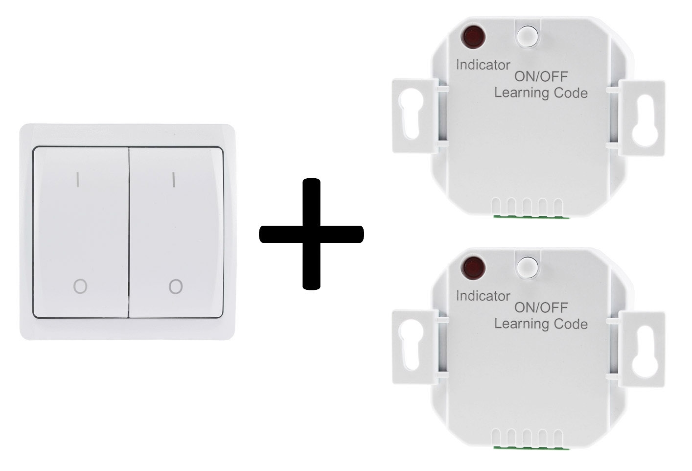 Praktisches Stater Set bestehend aus 1x 2-fach Wandschalter und 2x Funk-Empfänger für Unterputz Montage.