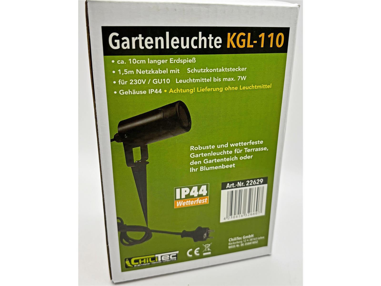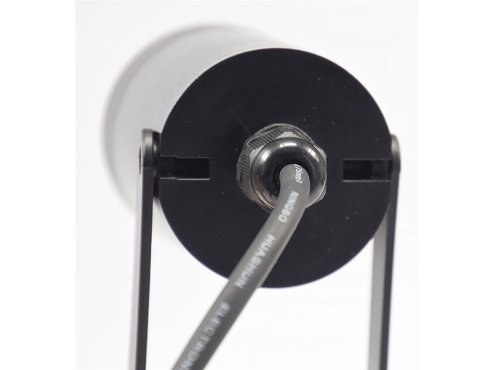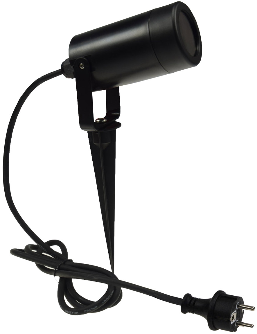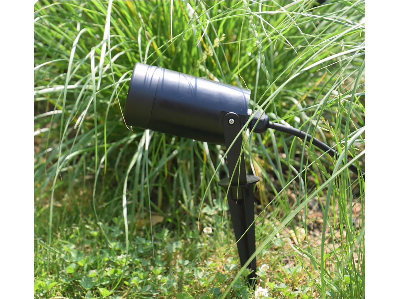 Der runde UV- & witterungsbeständige Gartenstrahler wird mit einem Erdspieß und 1,5m Kabel mit Stecker anschlussfertig geliefert. Der freie GU10 Sockel ist für LED Leuchtmittel bis max. 7 Watt geeignet und überlässt Ihnen die freie Wahl der Lichtfarbe und Helligkeit. Das Voll-Kunststoff Gehäuse bietet einen Schutz gegen Staub und Spitzwasser (Schutz Art IP44). Kein Trafo nötig - direkter Betrieb an 230V / 50Hz.