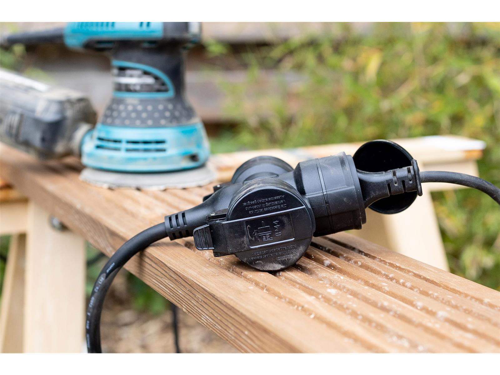 Praktische 3-Fach Schutzkontaktverlängerung für den Außenbereich.