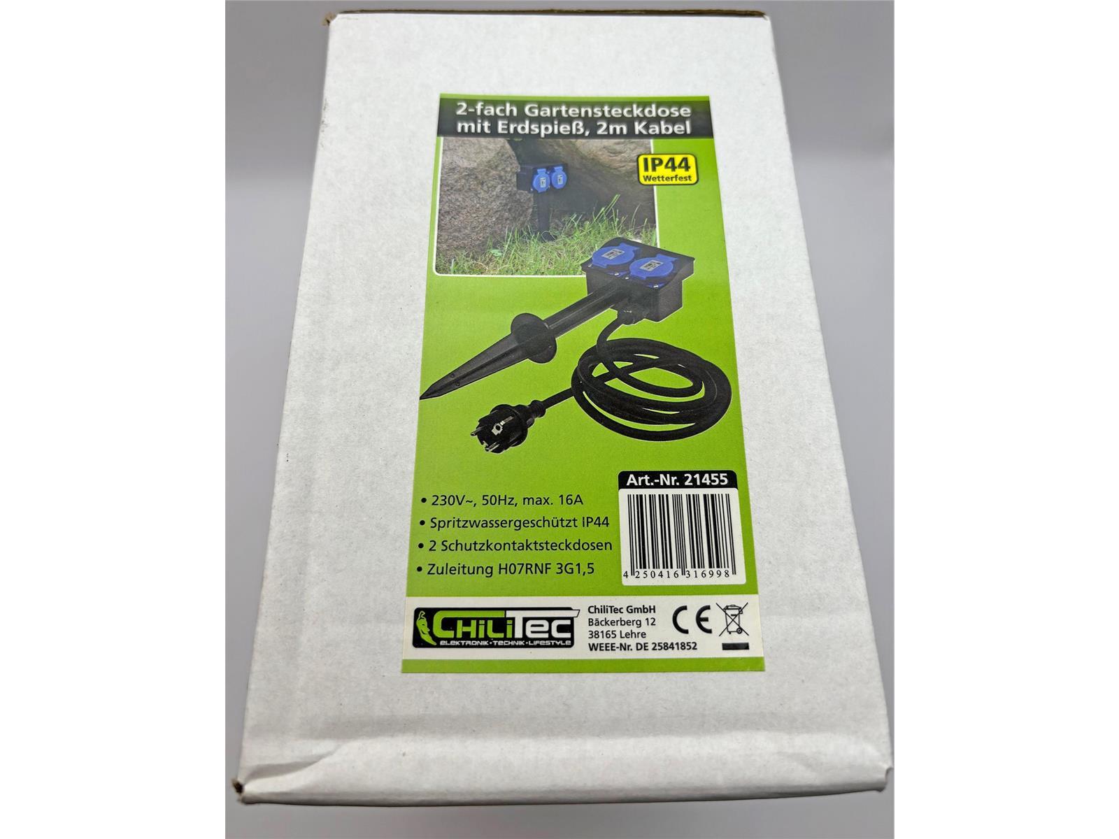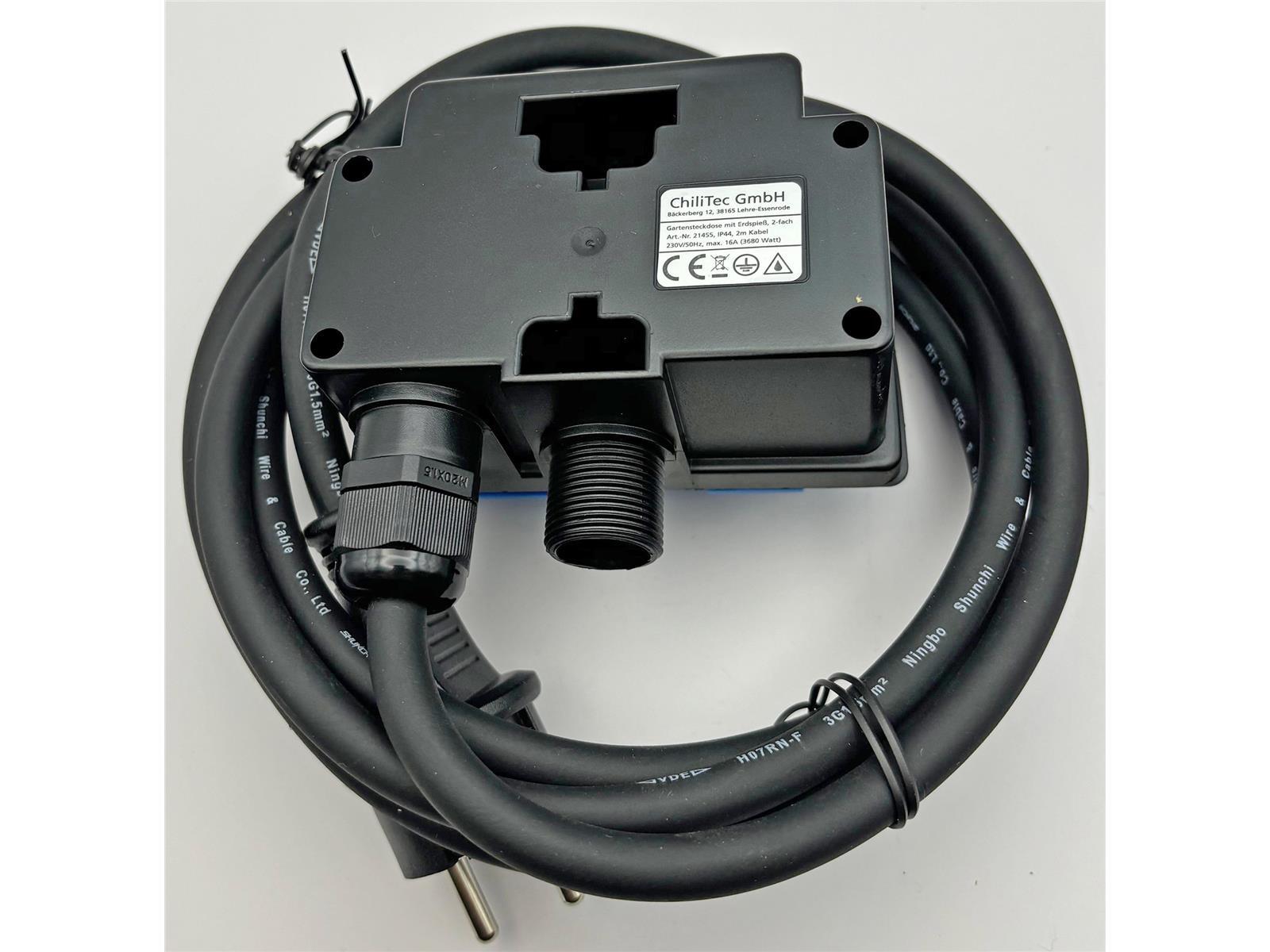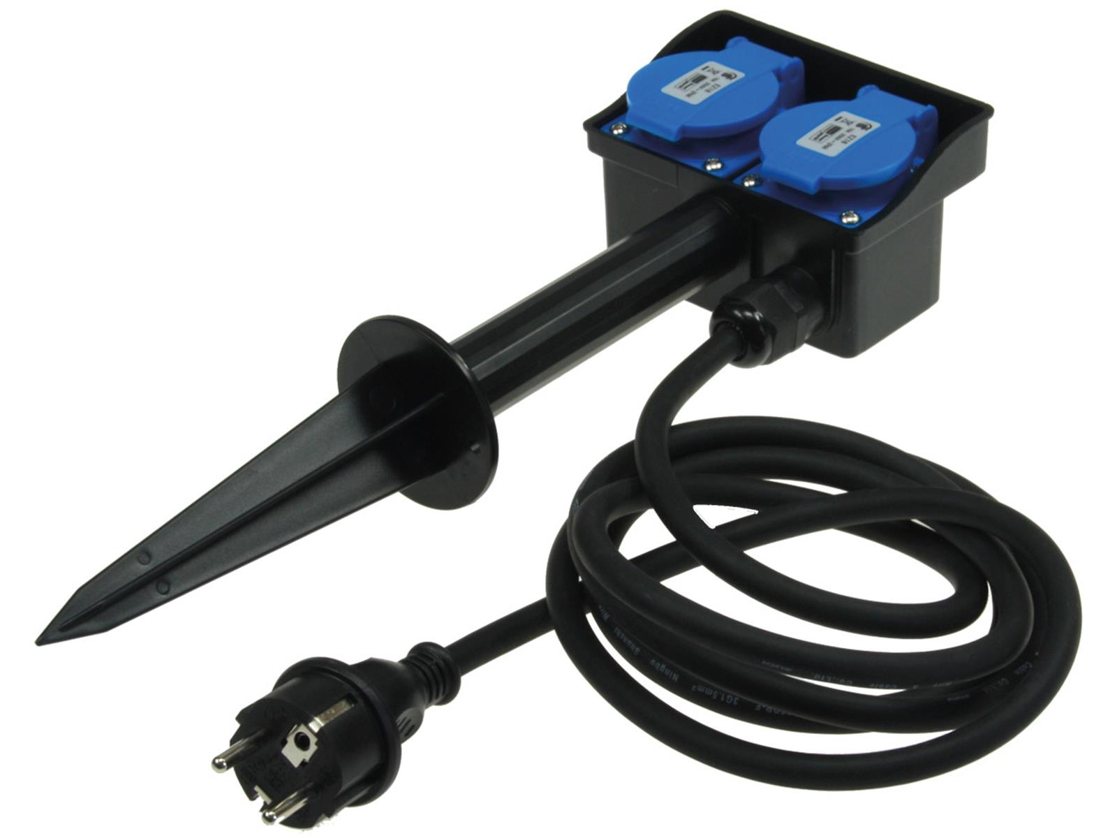 Produktinformationen "Gartensteckdose mit Erdspieß, 2-fachIP44, 2m Kabel"