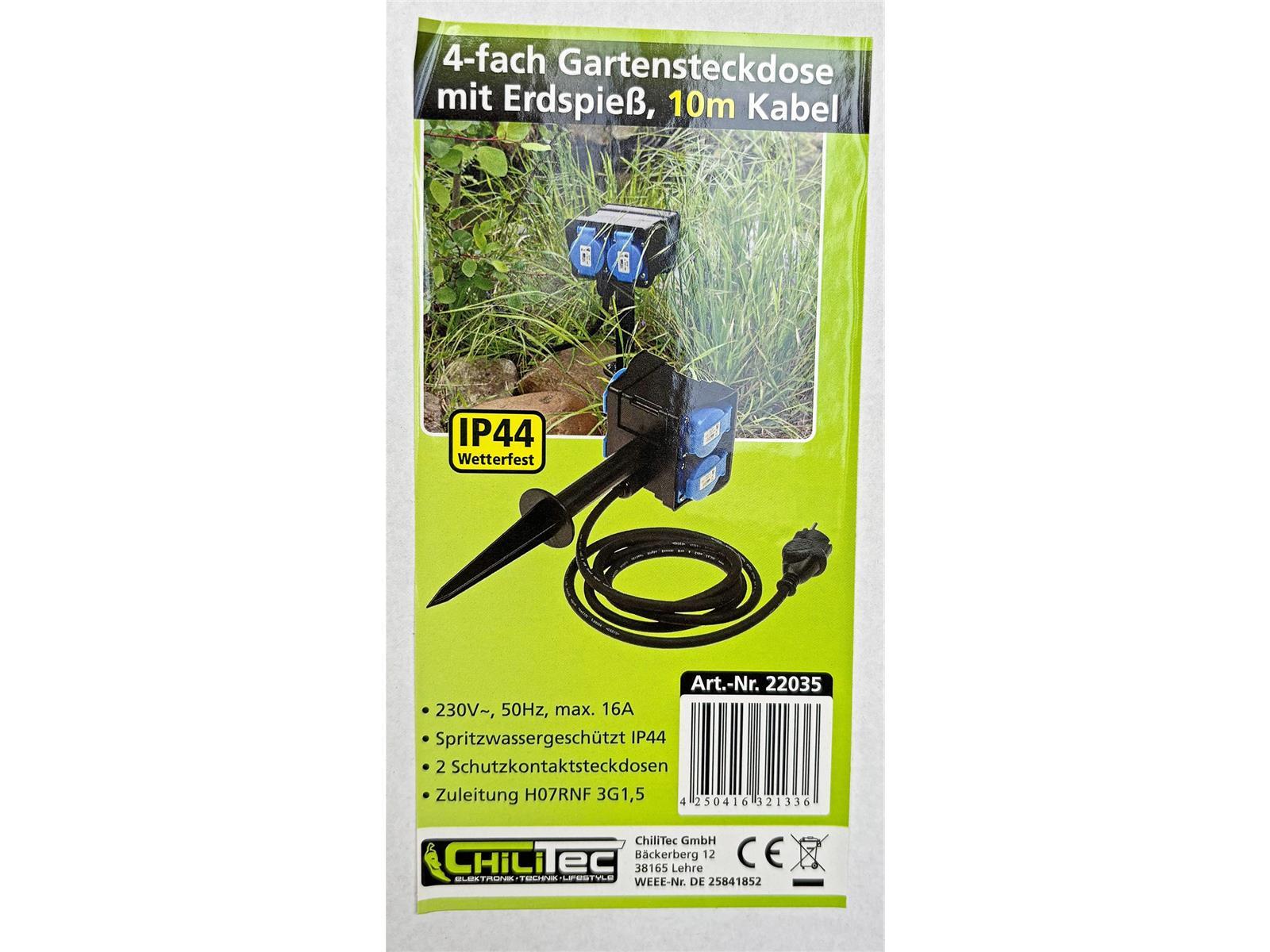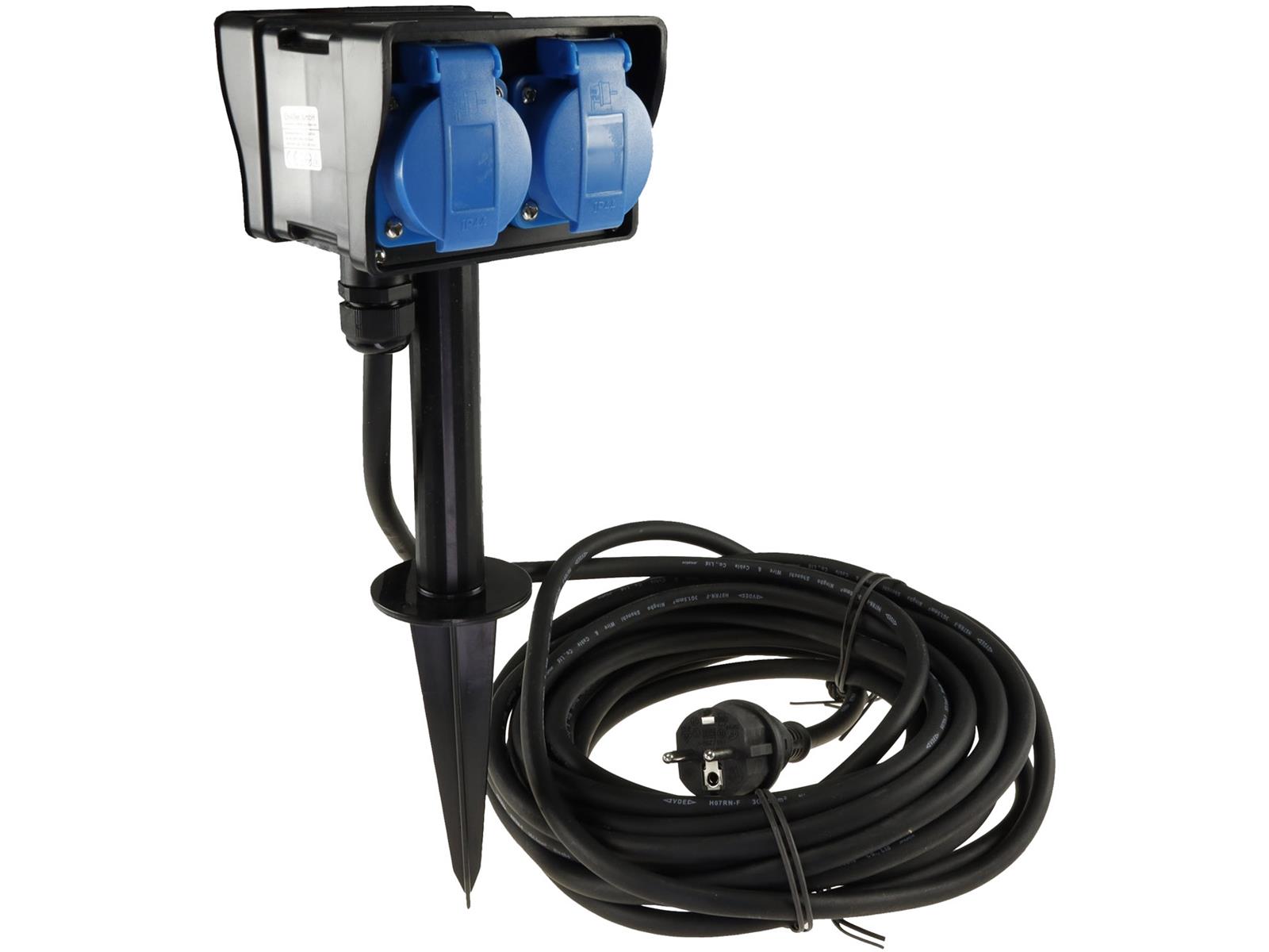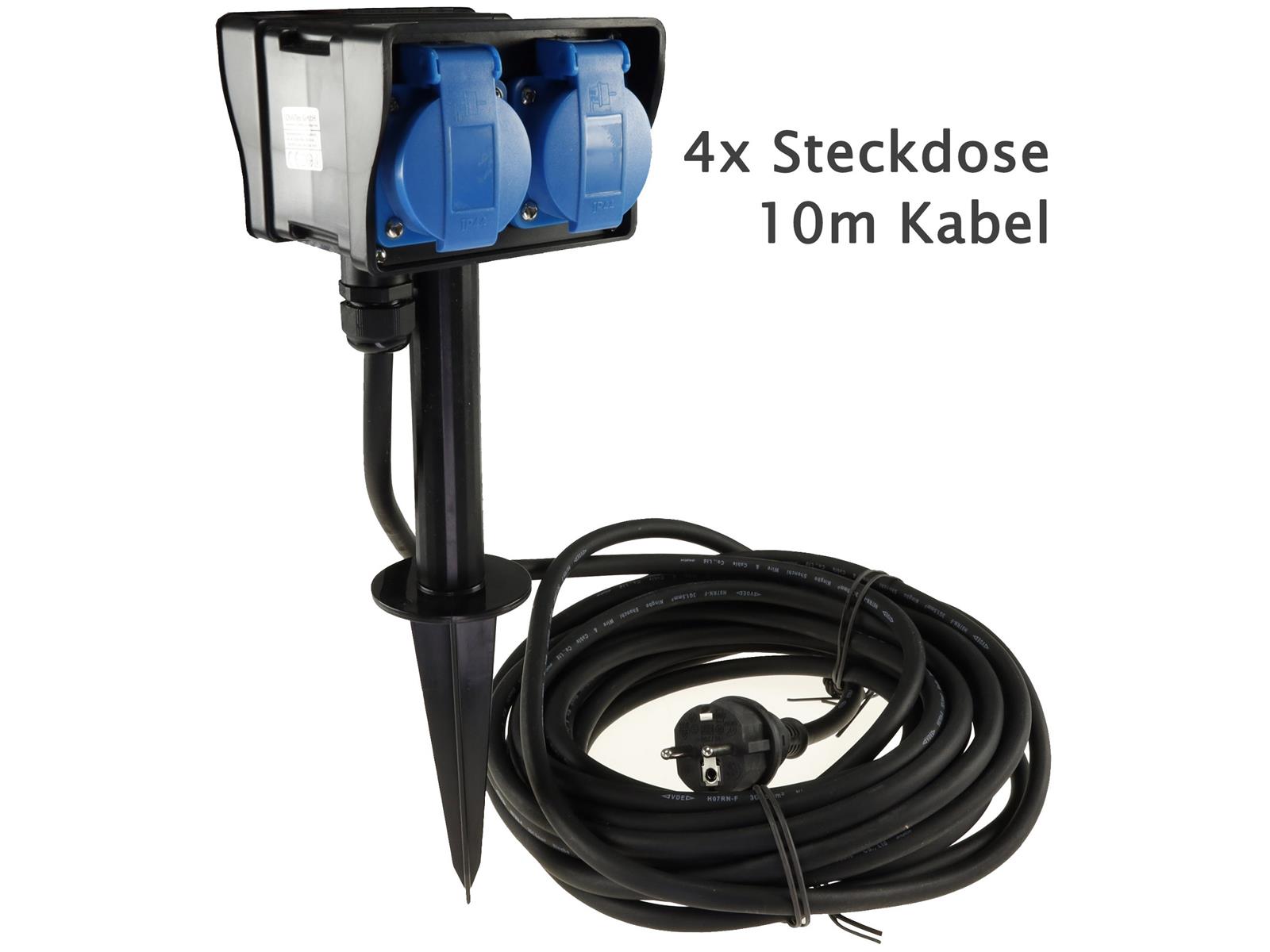 Produktinformationen "Gartensteckdose mit Erdspieß, 4-fachIP44, 10m Kabel"