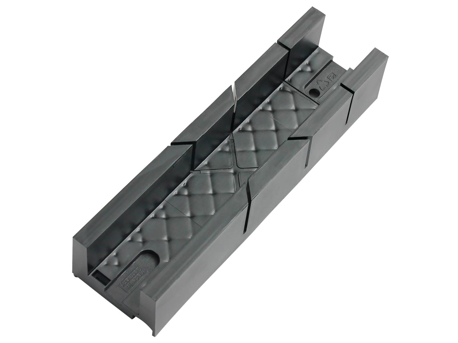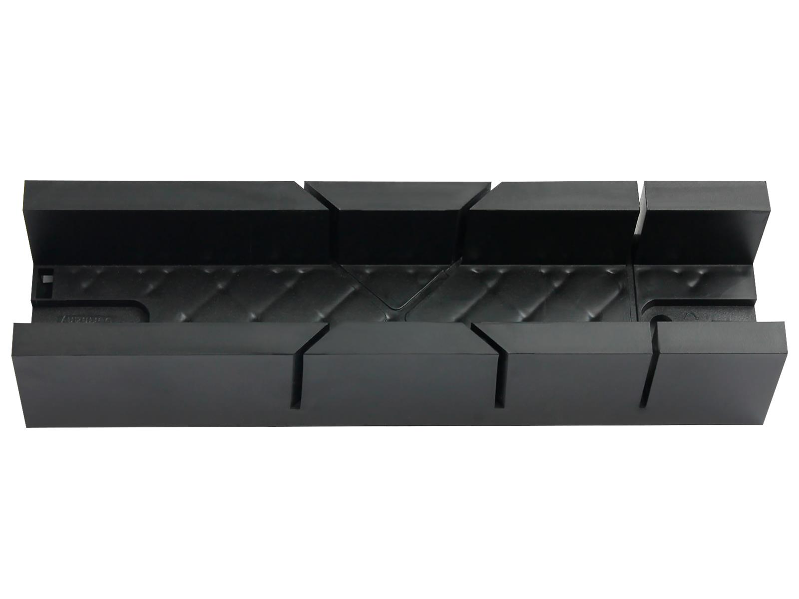• Abmessungen: 250 x 45 x 55 mm • hergestellt aus Kunststoff • zwei Einschnitte für Gehrungsschnitte von 45° • einen Einschnitt für Winkelschnitte von 90°