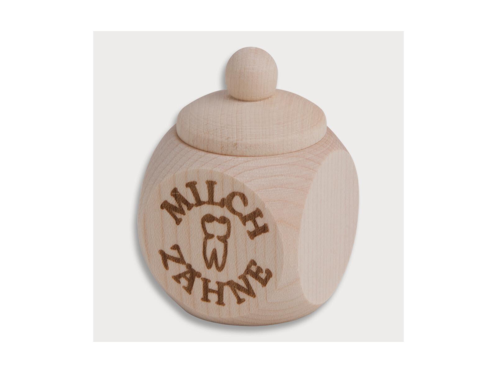 Produktinformationen "Holzdose, mit Schraubverschluss, Aufdruck Milchzähne, Einbrand aus Holz 4 cm"