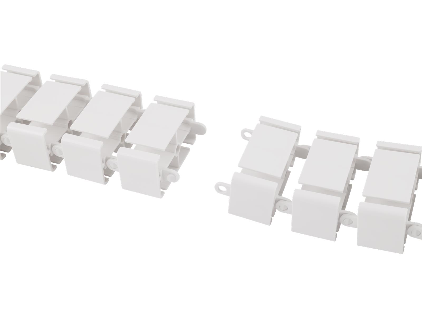 • flexibles Kabelmanagementsystem • Maße: 130x6,7x3,5cm • Farbe: weiß • Material: Stahl, ABS • sorgt für Ordnung am Arbeitsplatz • bietet mechanischen Schutz und Stabilität • platzsparend