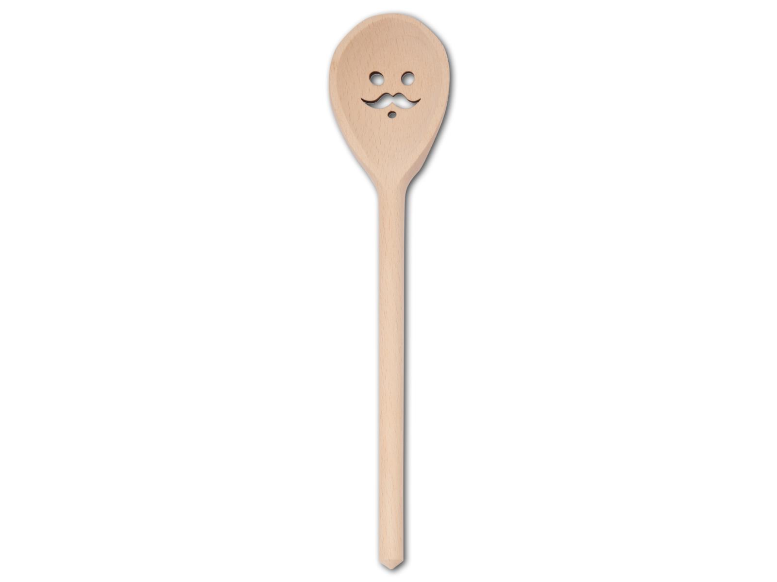 Produktinformationen "Kochlöffel, oval, mit Motiv Gesicht mit Schnurrbart, aus Holz 30 cm"