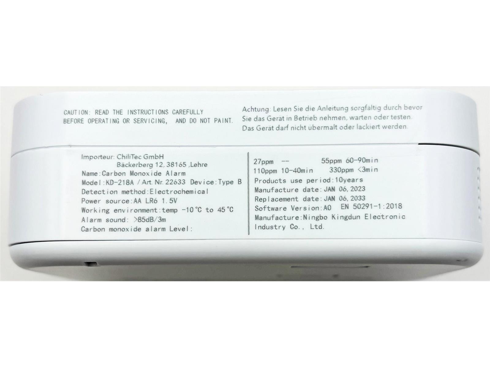 Produktinformationen "Kohlenmonoxid Melder "CT-KM 107"EN 50291 zertifiziert"