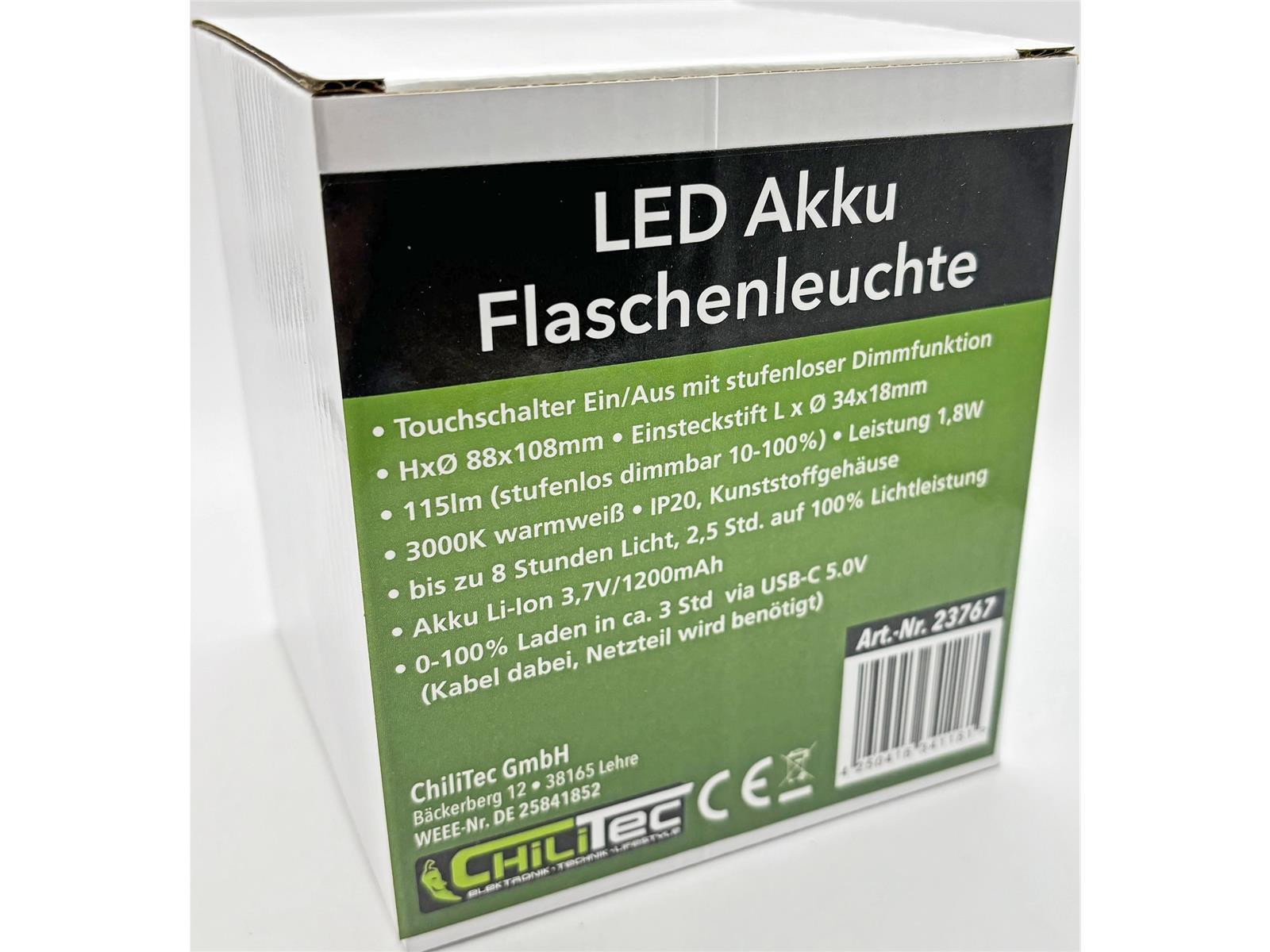 % 11,95 €* UVP (33.14% gespart)Dieser Flaschenaufsatz mit Led Beleuchtung verwandelt in Sekundenschnelle herkömmliche Flaschen in wunderschöne Dekoobjekte und Tischleuchten. Der Stift wird einfach über die Öffnung der Flasche gesteckt. Mit einem Innen-Durchmesser von 32mm passt er auf die meisten handelsüblichen Weinflaschen, Sektflaschen und Schnapsflaschen. Einfaches Laden vom Akku per USB-C Kabel (dabei).