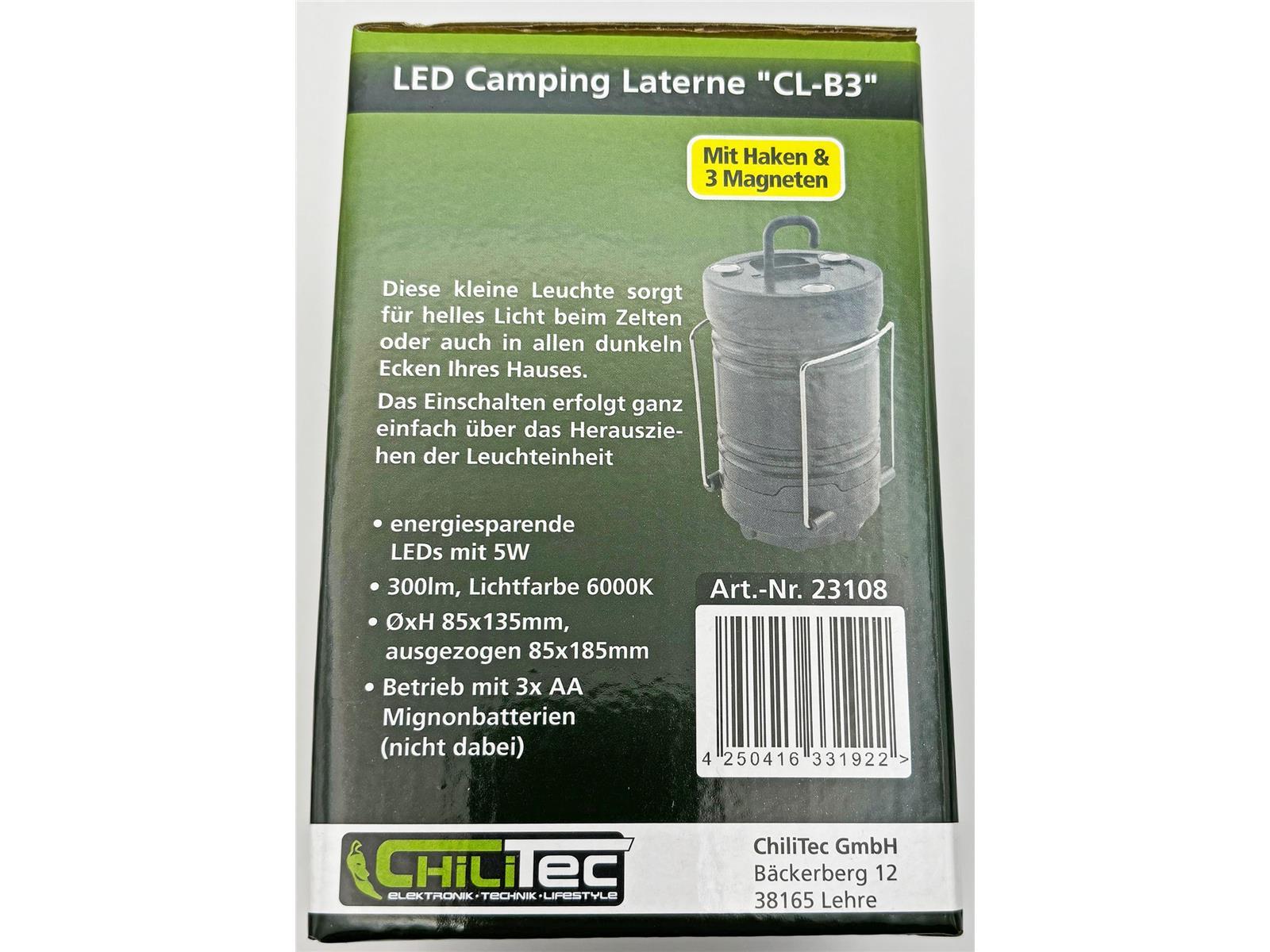 Produktinformationen "LED Camping Laterne "CL-B3"300lm, Batteriebetrieb, ØxH 85x135mm"