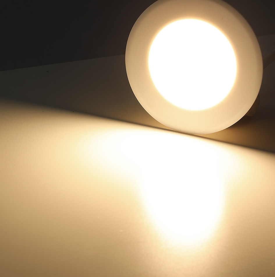 Elegante LED-Einbauleuchte für den direkten Anschluss an 230V AC - kein Trafo notwendig. Ideal für z.B. Decken oder Wände - dank der 60mm Ø ideal für den Einbau in handelsübliche Schalterdosen.