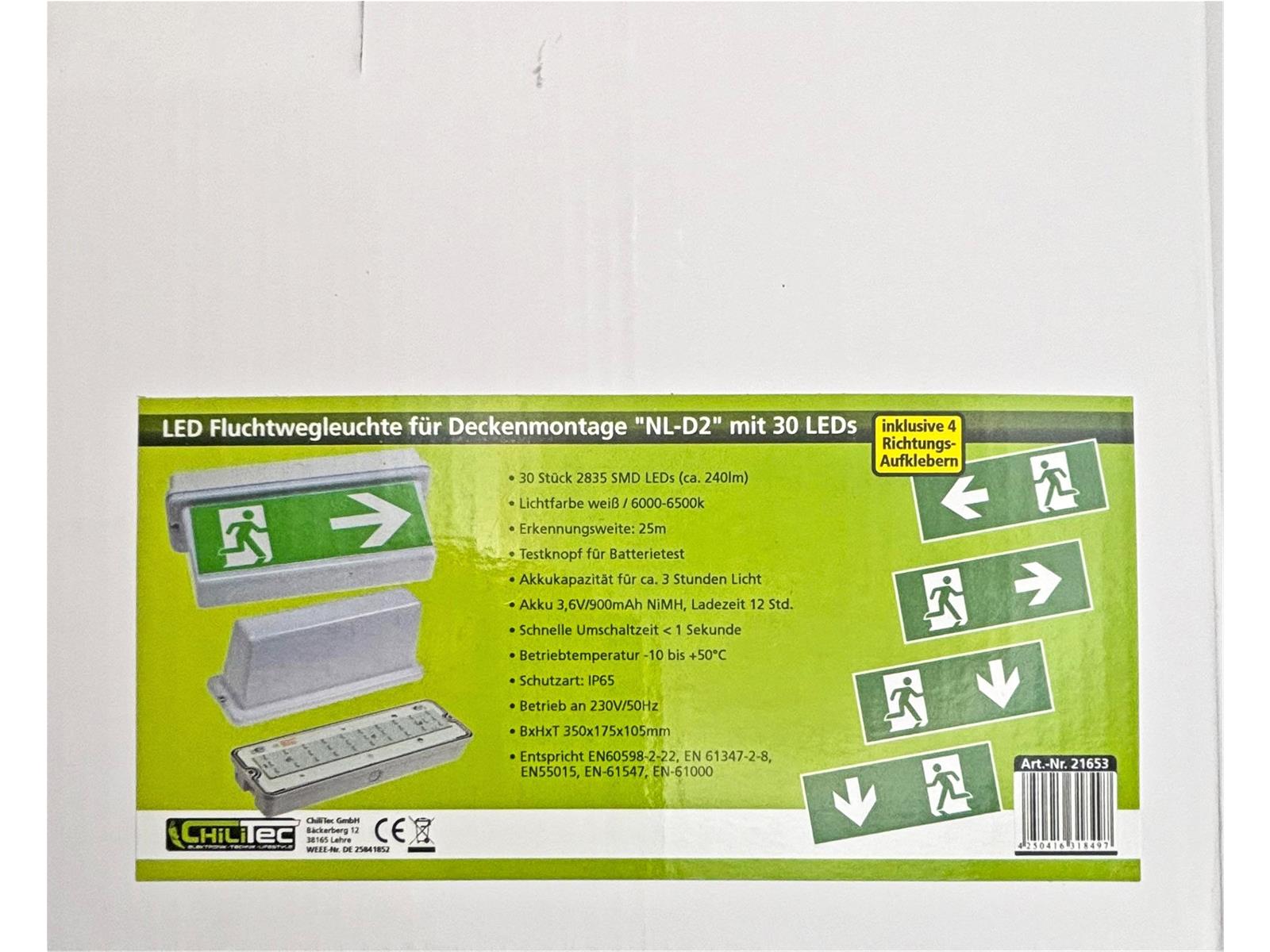 | Eigenschaften: | Akkukapazität für ca. 3 Stunden Licht, Dauerlicht (DS Betrieb), Erkennungsweite: 25m, bei Stromausfall (Bereitschafts-Schaltung, BS-Betrieb) |