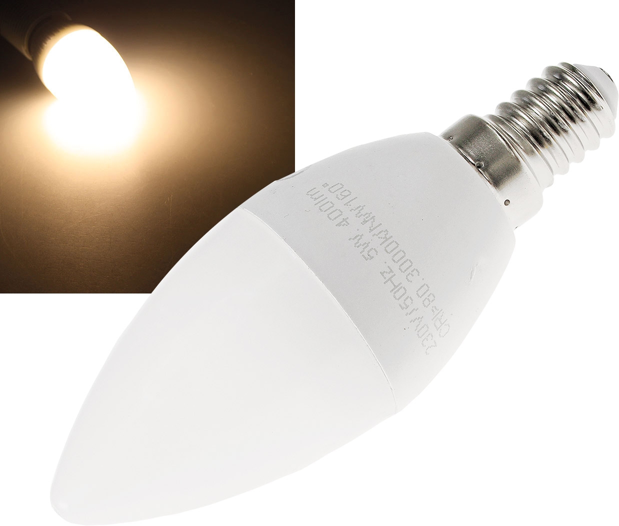 Produktinformationen "LED Kerzenlampe E14 "K50" warmweiß3000k, 400lm, 230V/5W"
