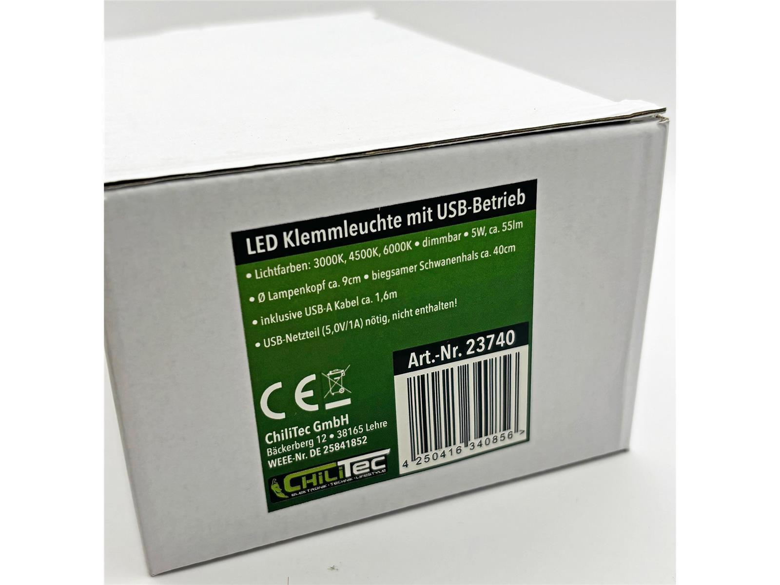 Produktinformationen "LED Klemmleuchte mit USB-Betrieb 40cm Schwanenhals, dimmbar, 55lm"