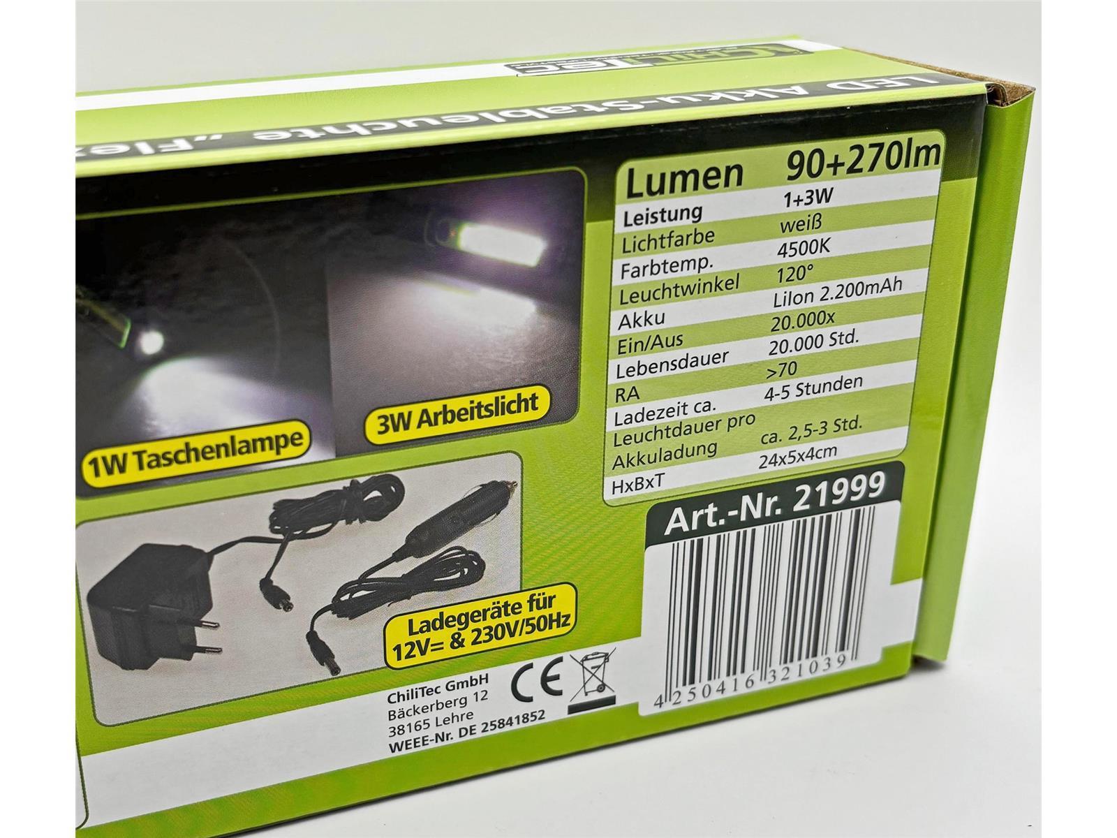 Produktinformationen "LED Stableuchte mit Akku "FlexiLED 300"LiIon Akku, Magnethalter, 3W, 270lm,IP44"