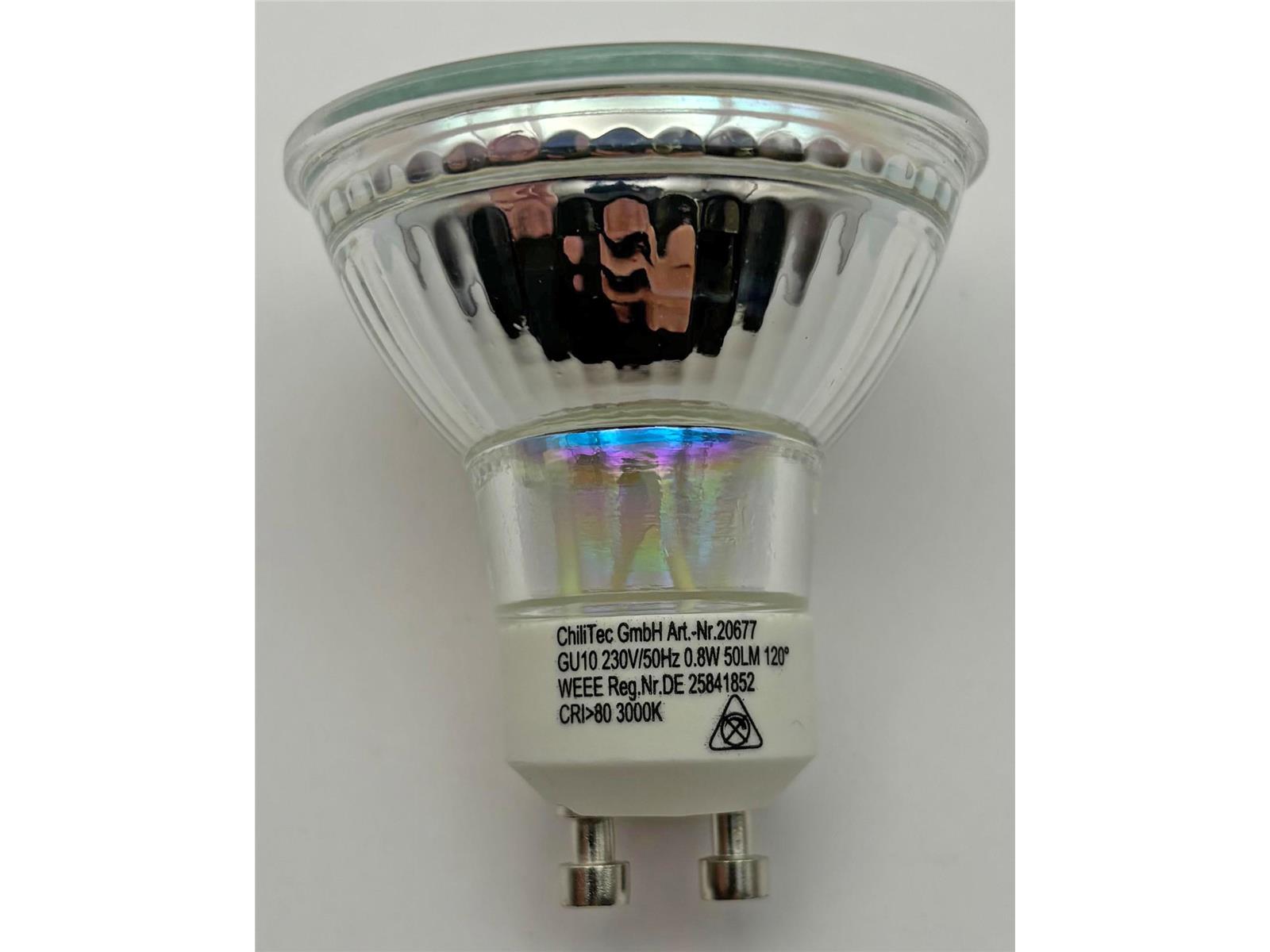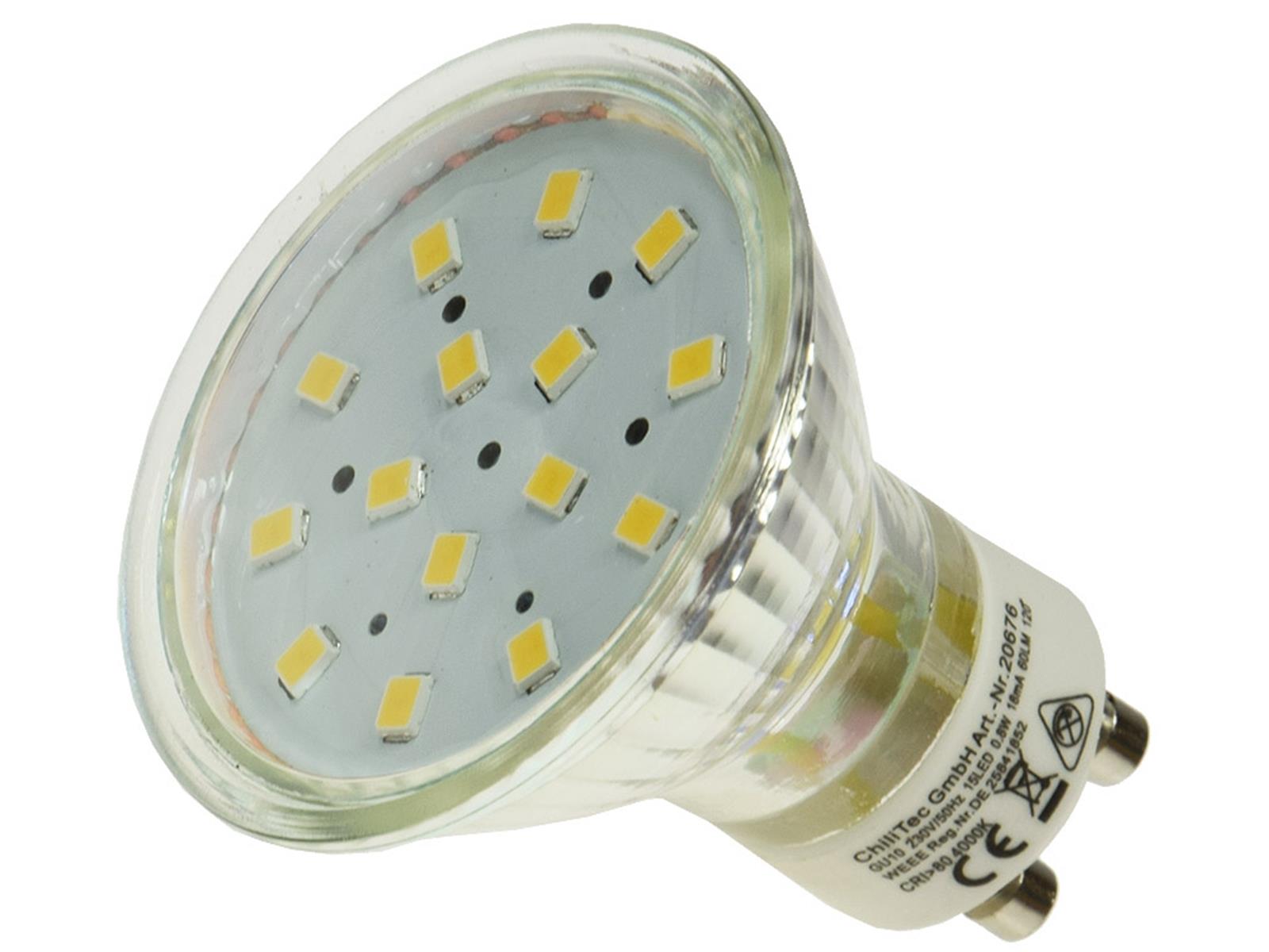 Produktinformationen "LED Strahler GU10 "H10 SMD" 15 SMD LEDs3000k, 50lm, 120°, 230V/0,8W, warmweiß"