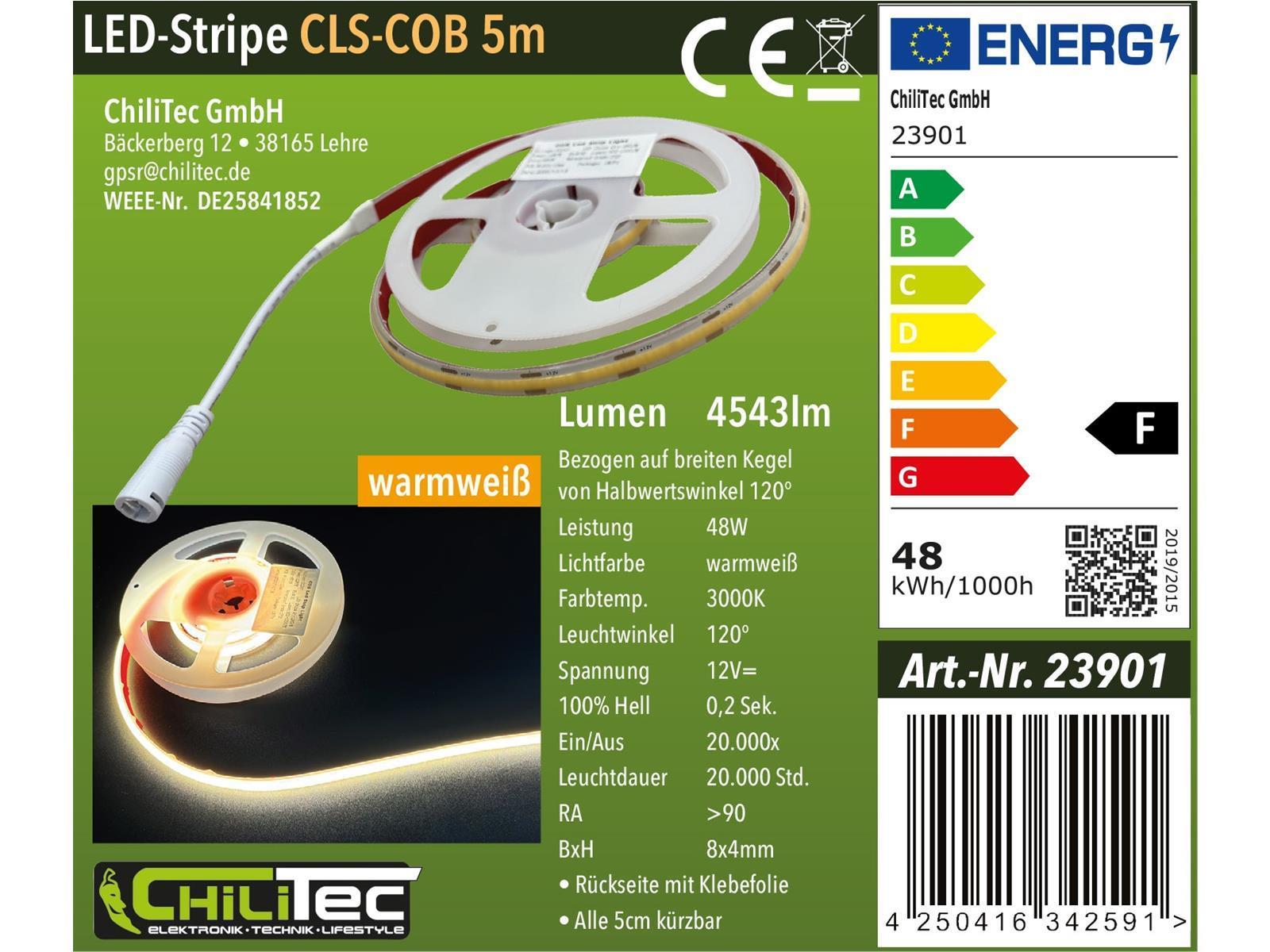 Produktinformationen "LED-Stripe "CLS-COB V2" 5m, warmweiß 12V, 48W, 4543 Lumen"