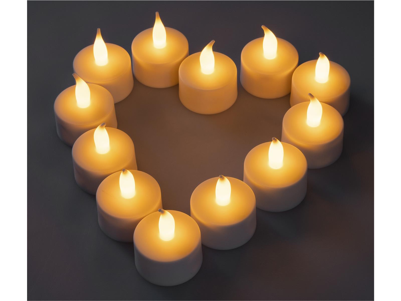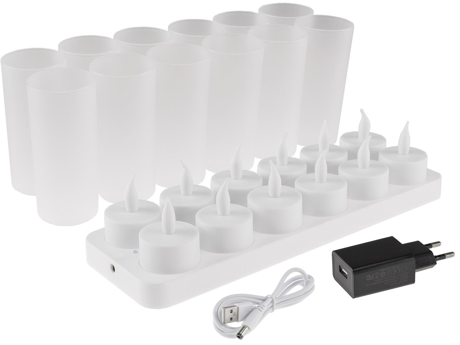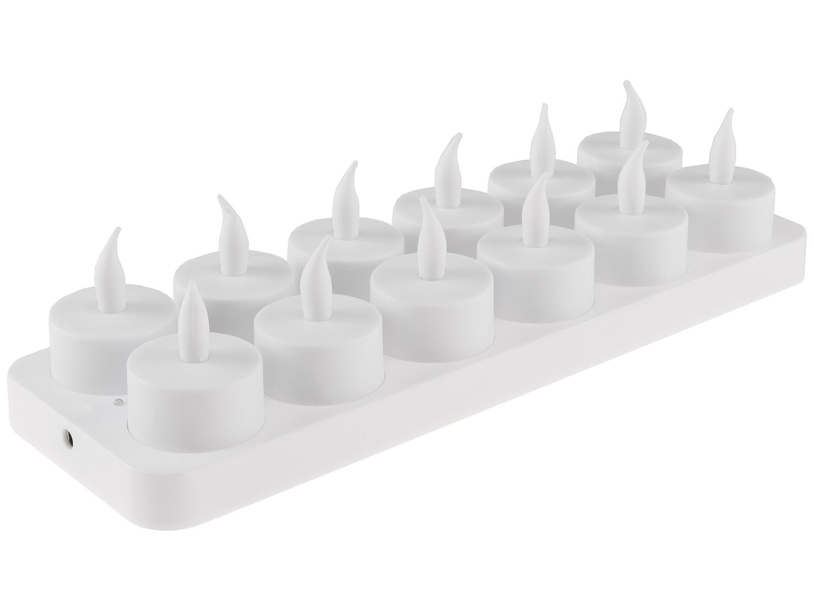 Produktinformationen "LED Teelichter, 12er Set, mit Windschutzwiederaufladbar auf Ladestation"