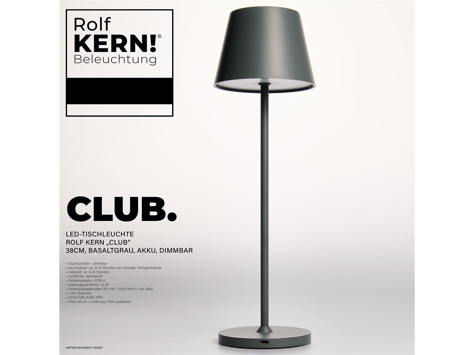 Produktinformationen "LED-Tischleuchte ROLF KERN „Club“ 38cm, Basaltgrau, Akku, dimmbar"