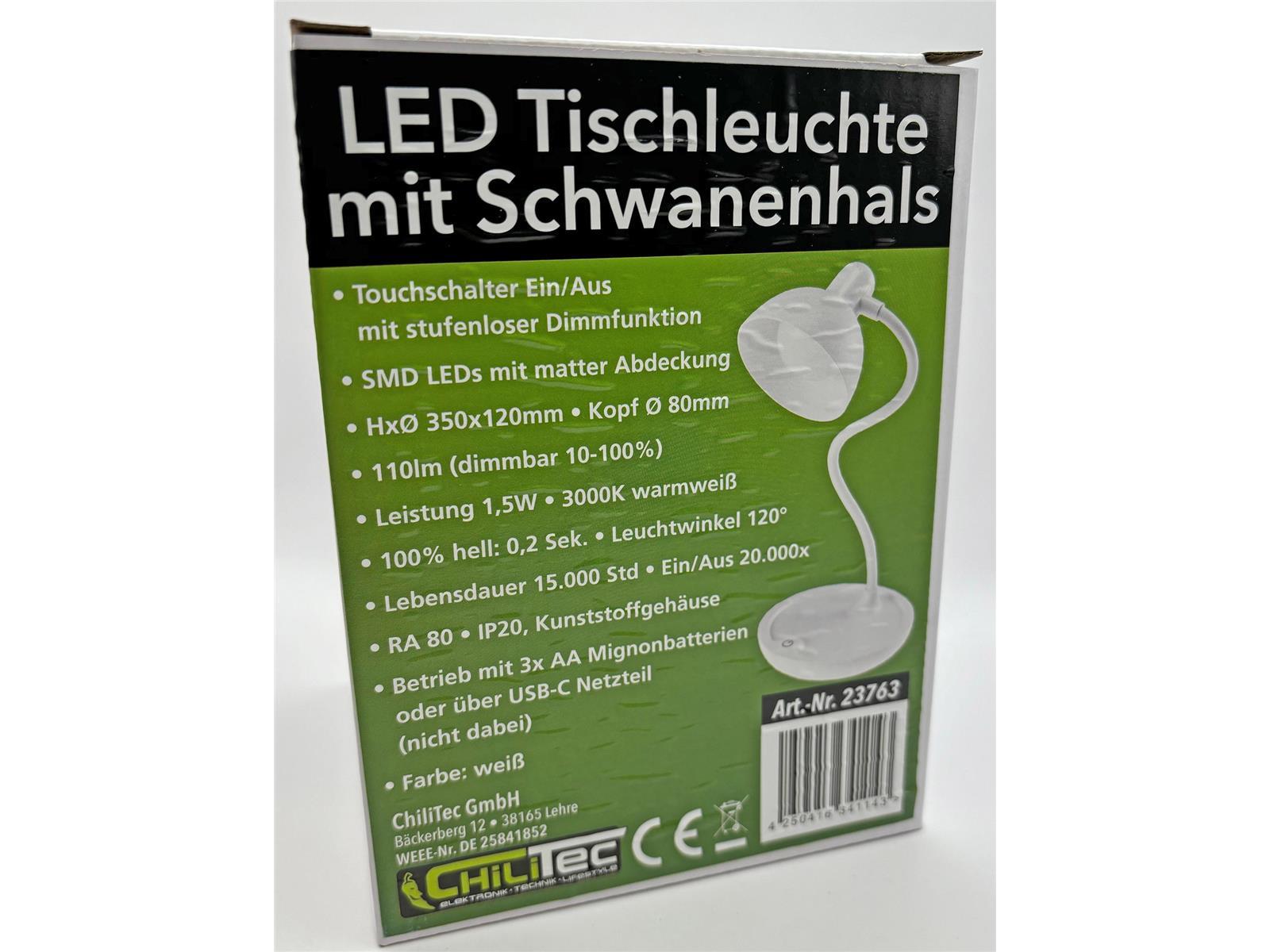 Produktinformationen "LED Tischleuchte mit Schwanenhals Batterie, dimmbar, warmweiß, Weiß"