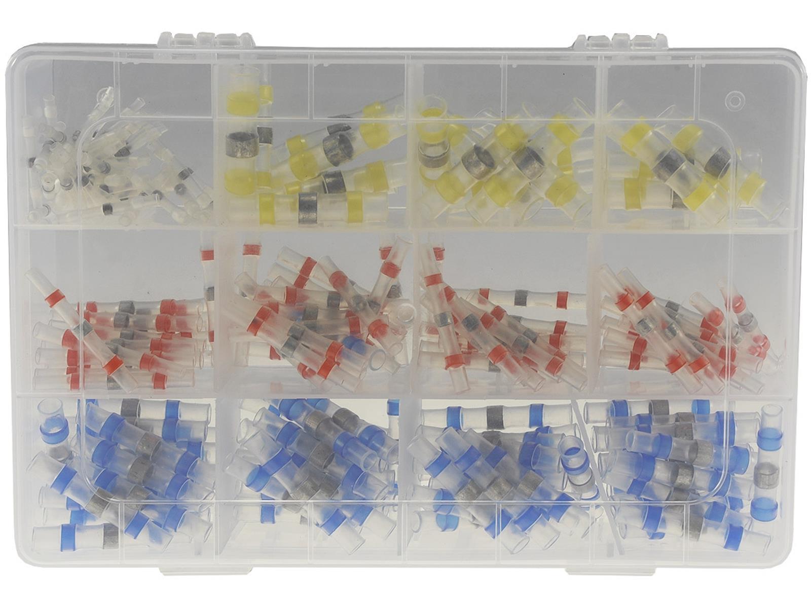 Isolierende Lötverbinder mit transparentem Schrumpfschlauch in Sortimentsbox für Reparaturen an Kabel und elektischen Leitungen im Innen und Aussenbereich. Mit diesem 200-teiligem Verbinder Set können Sie Kabel zusammenfügen und gegen lösen, ungewolltes Trennen und äussere Einflüsse schützen. Ideal für den Einsatz in Elektrik, Modellbahn, DIY Bereich, Fahrrad, KFZ & Boot sowie sichere Einsätze rund um Haus und Garten.